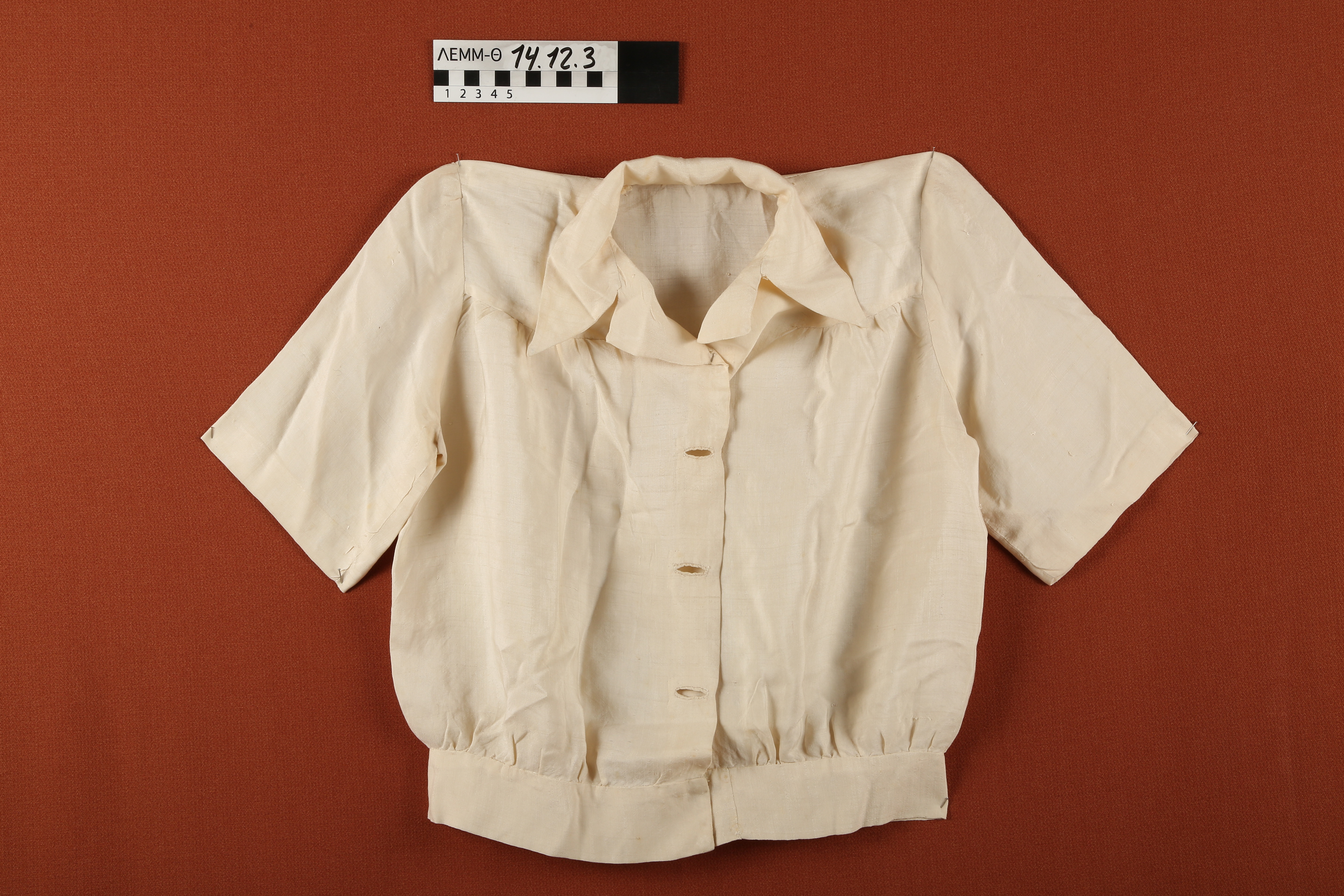 Μπλούζα - μεταξωτή μπλούζα σε ανοιχτό μπεζ χρώμα με κοντά μανίκια