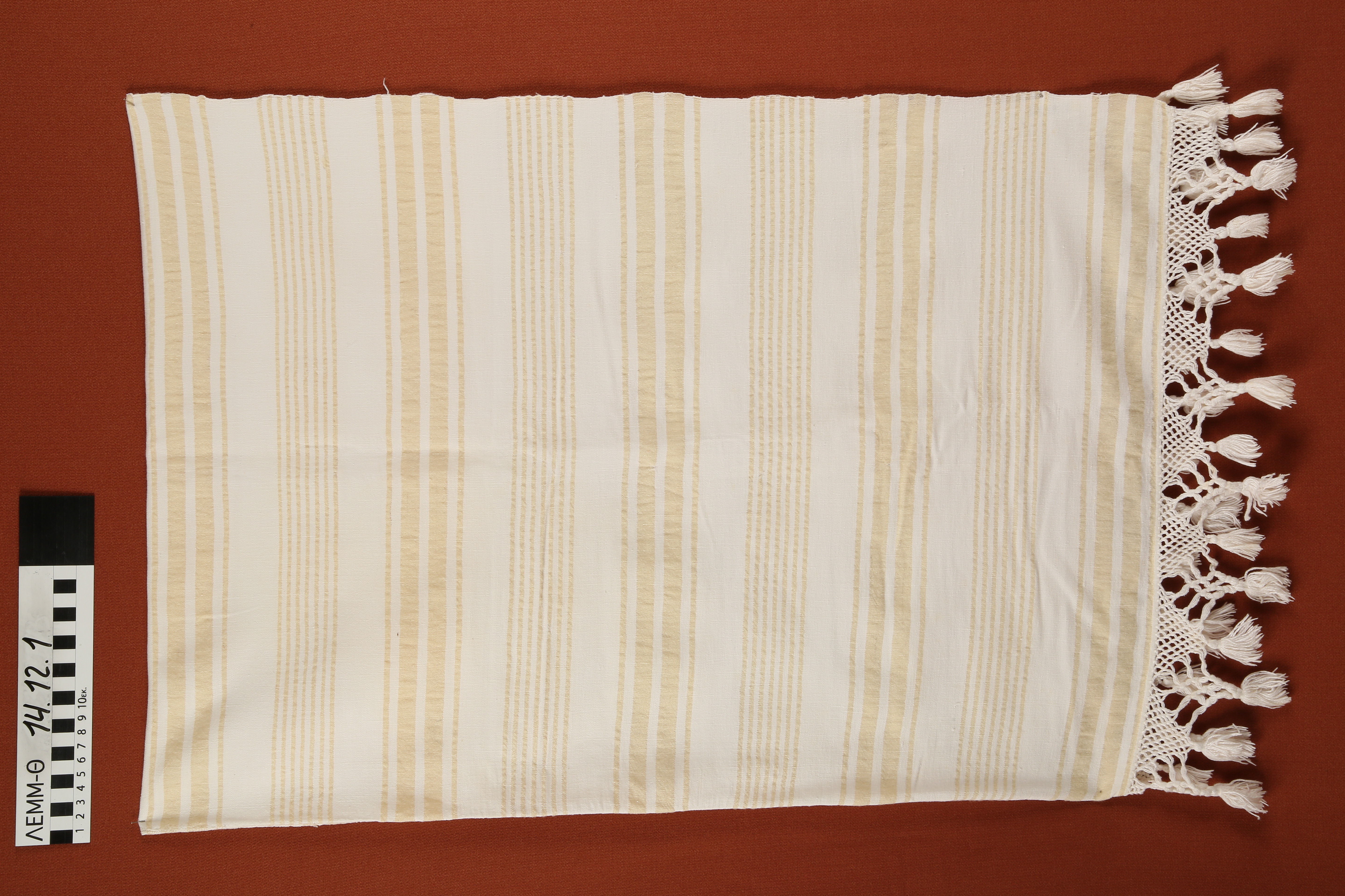 Κουβέρτα - βαμβακο-μάλλινη, υφαντή κουβέρτα σε λευκό και μπεζ χρώμα