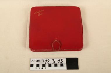 Μαντηλοθήκη - δερμάτινη μαντηλοθήκη σε κόκκινο χρώμα, με επιγραφή "Mouchoirs Bas"