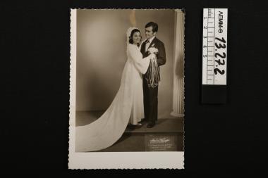 Φωτογραφία γάμου - ασπρόμαυρη φωτογραφία, στην οποία απεικονίζεται το ζευγάρι, 1971
