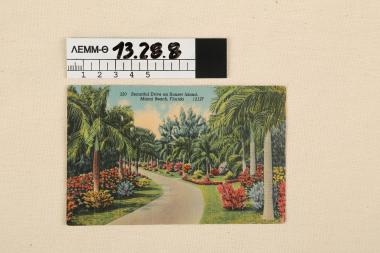 Καρτ ποστάλ - έγχρωμη καρτ ποστάλ, με απεικόνιση ένα δρόμο στο Σανσετ Αϊλαντ (Sunset Island) στο Μαϊάμι, 1948