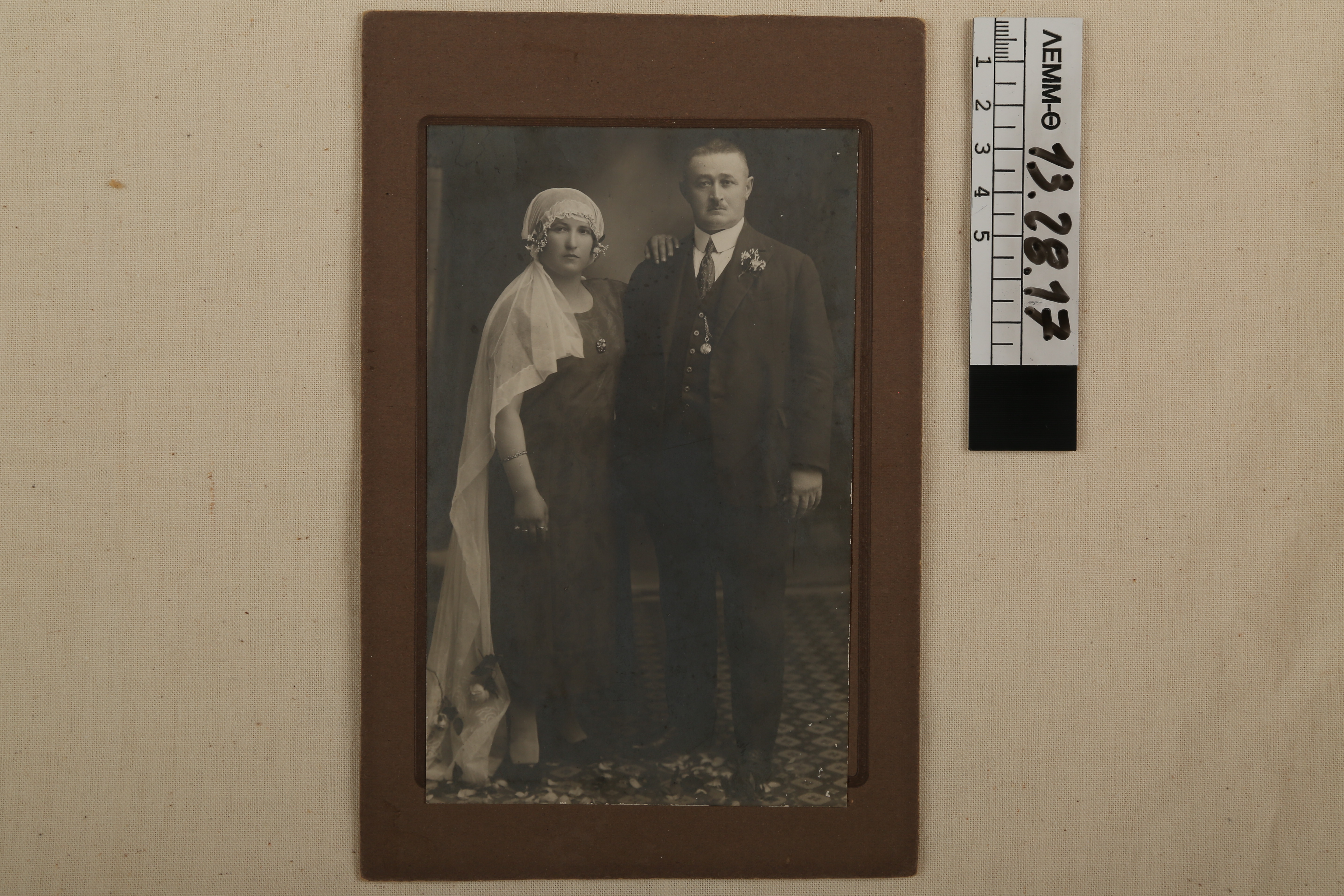 Φωτογραφία - φωτογραφία γάμου, ασπρόμαυρη επικολλημένη σε καφέ χαρτόνι