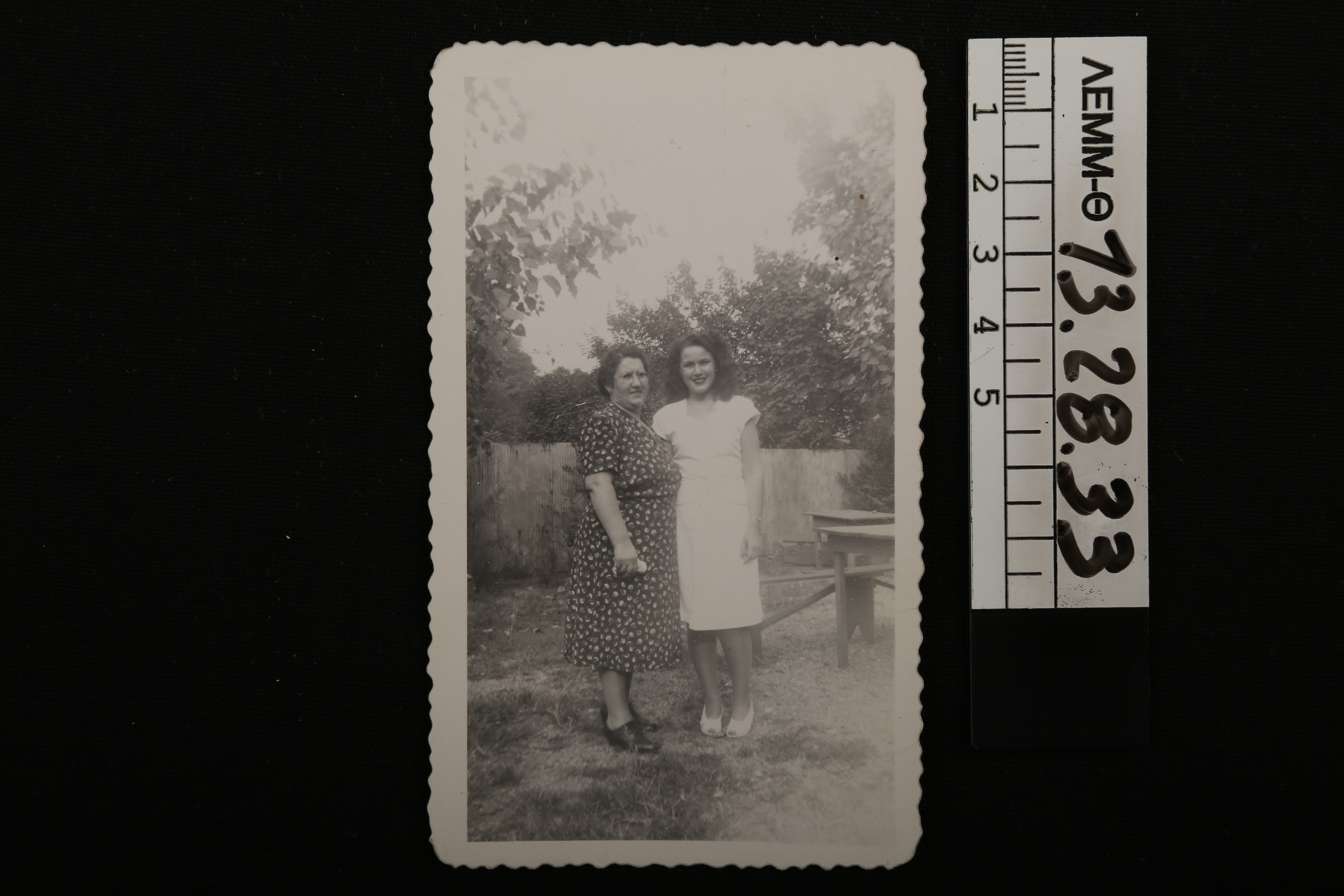 Φωτογραφία - ασπρόμαυρη φωτογραφία, στην οποία απεικονίζονται δύο γυναίκες σε αυλή