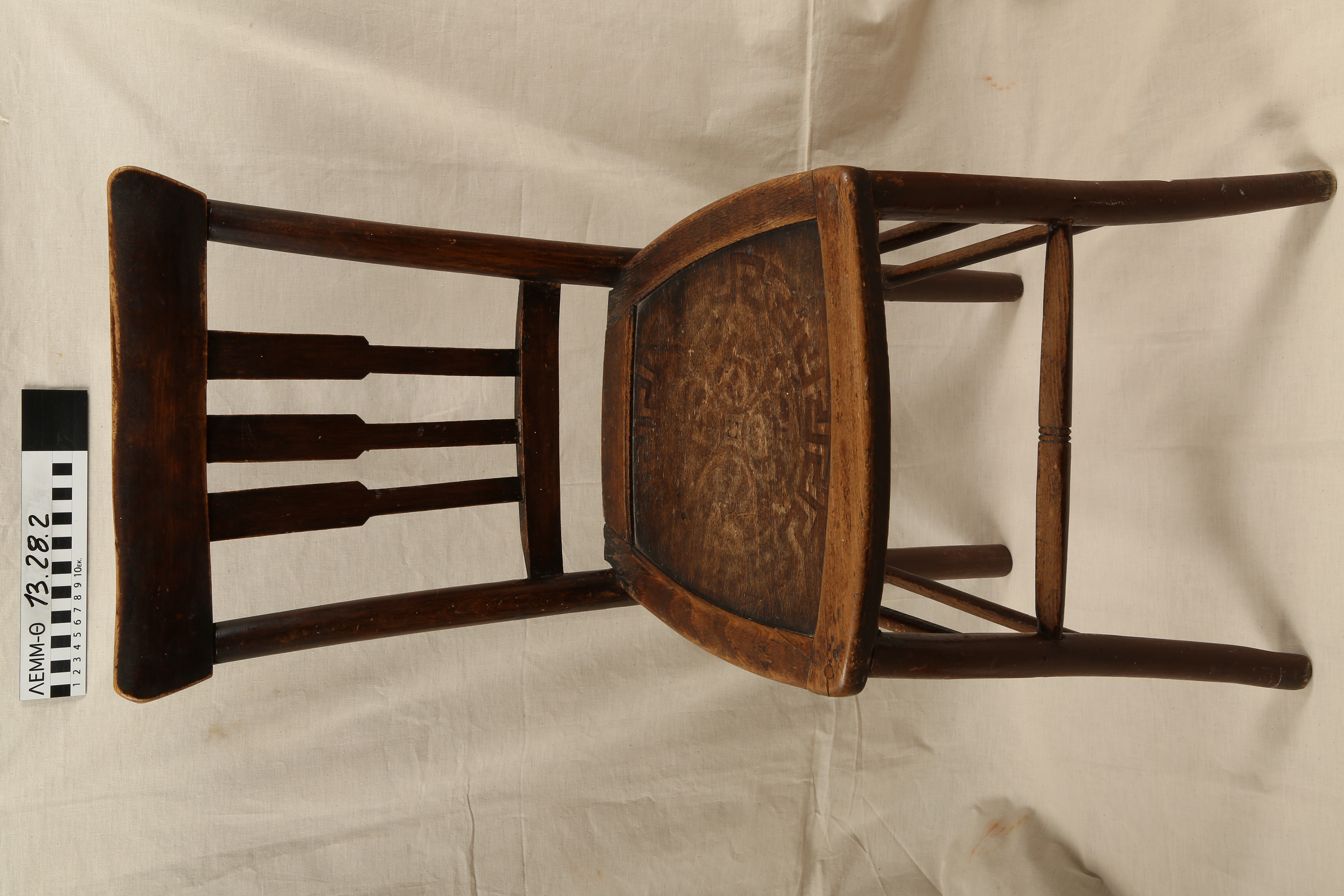 Καρέκλα - ξύλινη καρέκλα με κυκλικό σχέδιο (μαίανδρος και ανθικά μοτίβα) στο κάθισμα