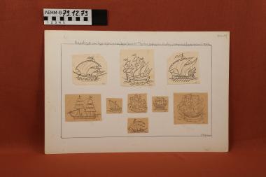 Σχέδια καραβιών - εννέα σχέδια τα οποία απεικονίζουν καραβέλλες και άλλα πλεούμενα σε έργα λαϊκής τέχνης