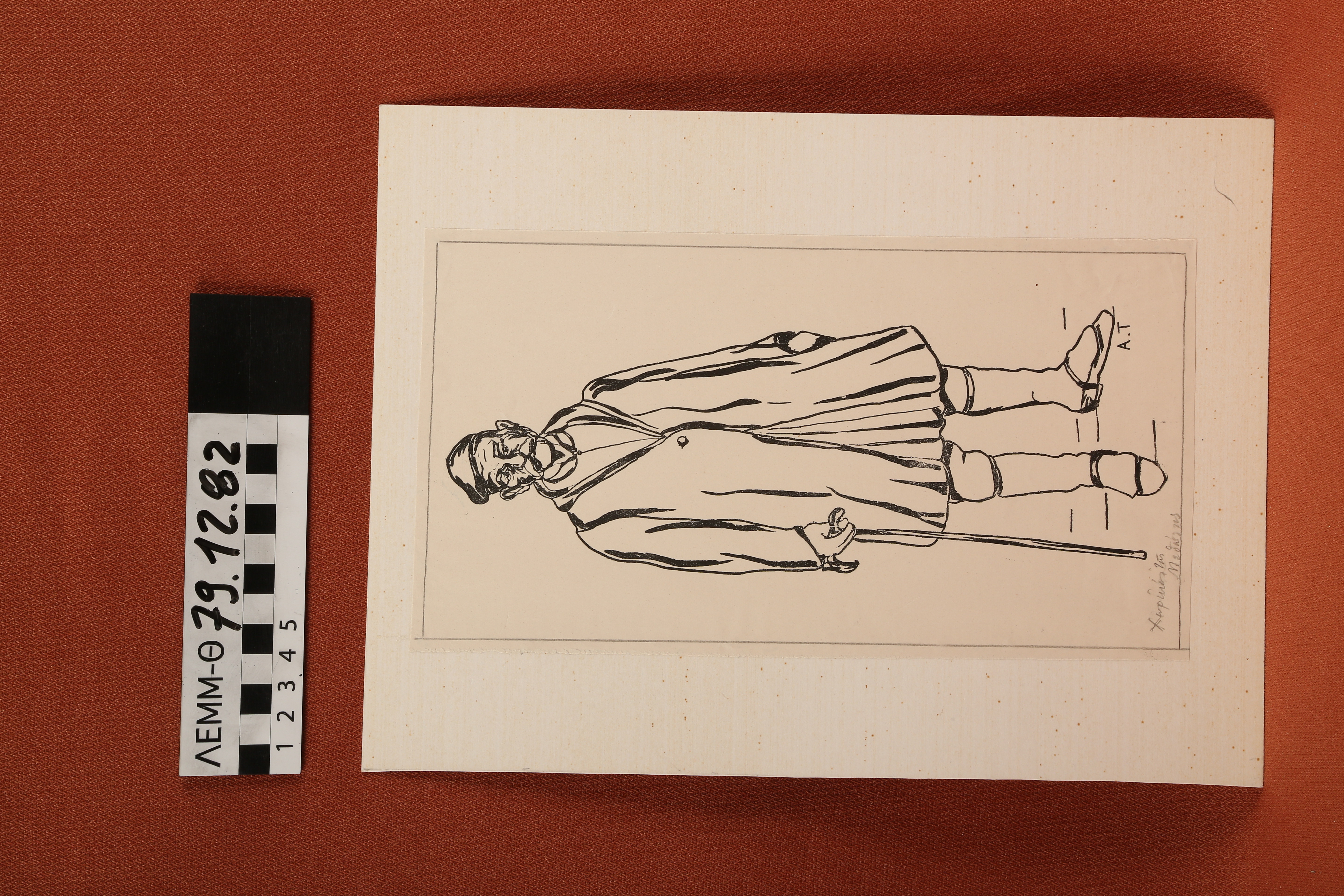 Σχέδιο - σχέδιο, στο οποίο απεικονίζεται χωρικός της Μεθώνης με παραδοσιακή ενδυμασία