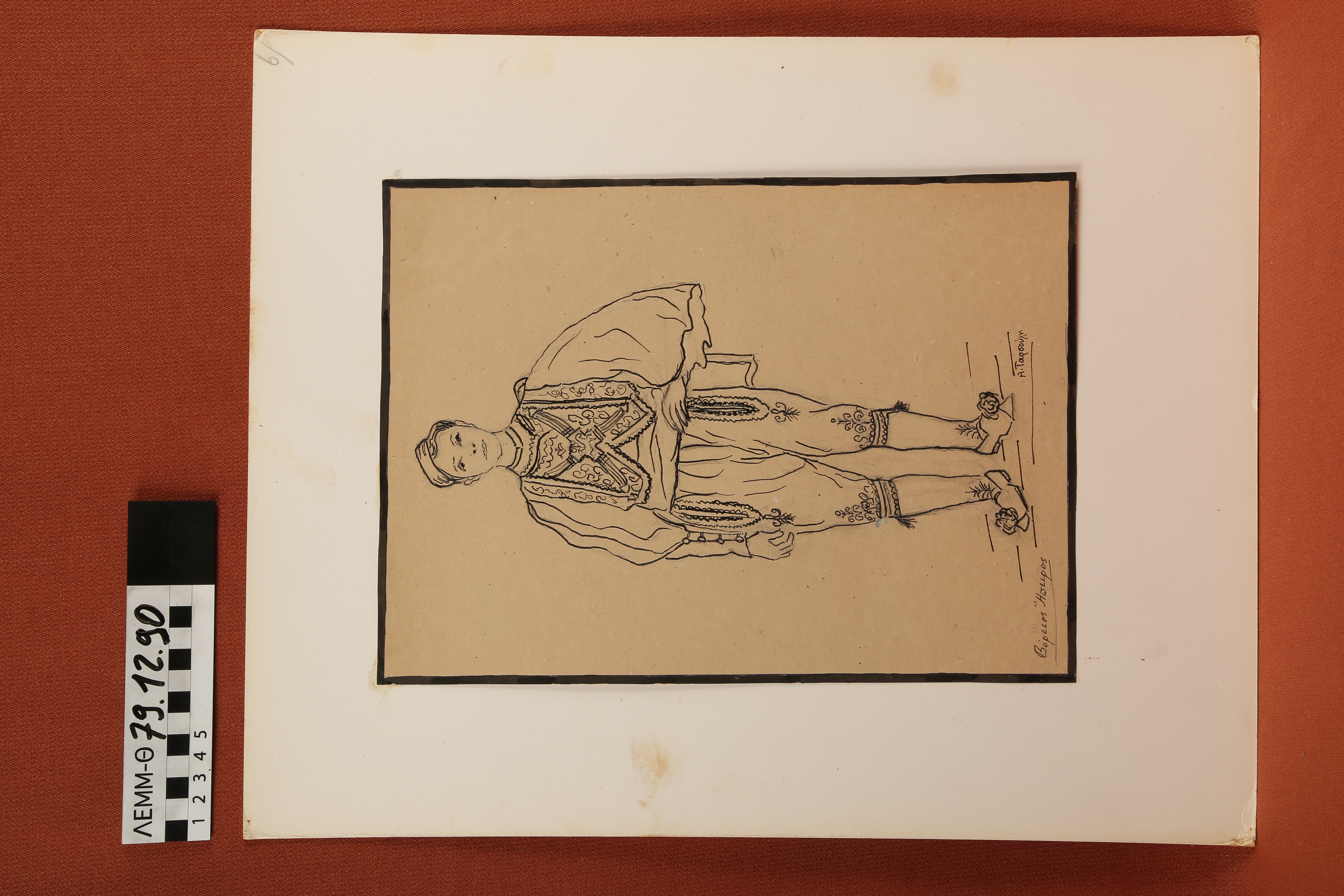 Σχέδιο - σχέδιο, στο οποίο απεικονίζεται ένας νεαρός άνδρας με παραδοσιακή ενδυμασία της Βόρειας Ηπείρου