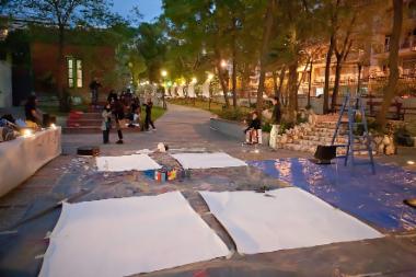 Αυτοσχεδιαστικό performance μικτών μέσων:διάδραση μουσικής, ζωγραφικής, κίνησης και live visuals από την ομάδα '6daEXIt'. (EL)
