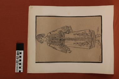 Σχέδιο - σχέδιο, στο οποίο απεικονίζεται γυναίκα με παραδοσιακή ενδυμασία της Βορείου Ηπείρου, Λυντζουριά