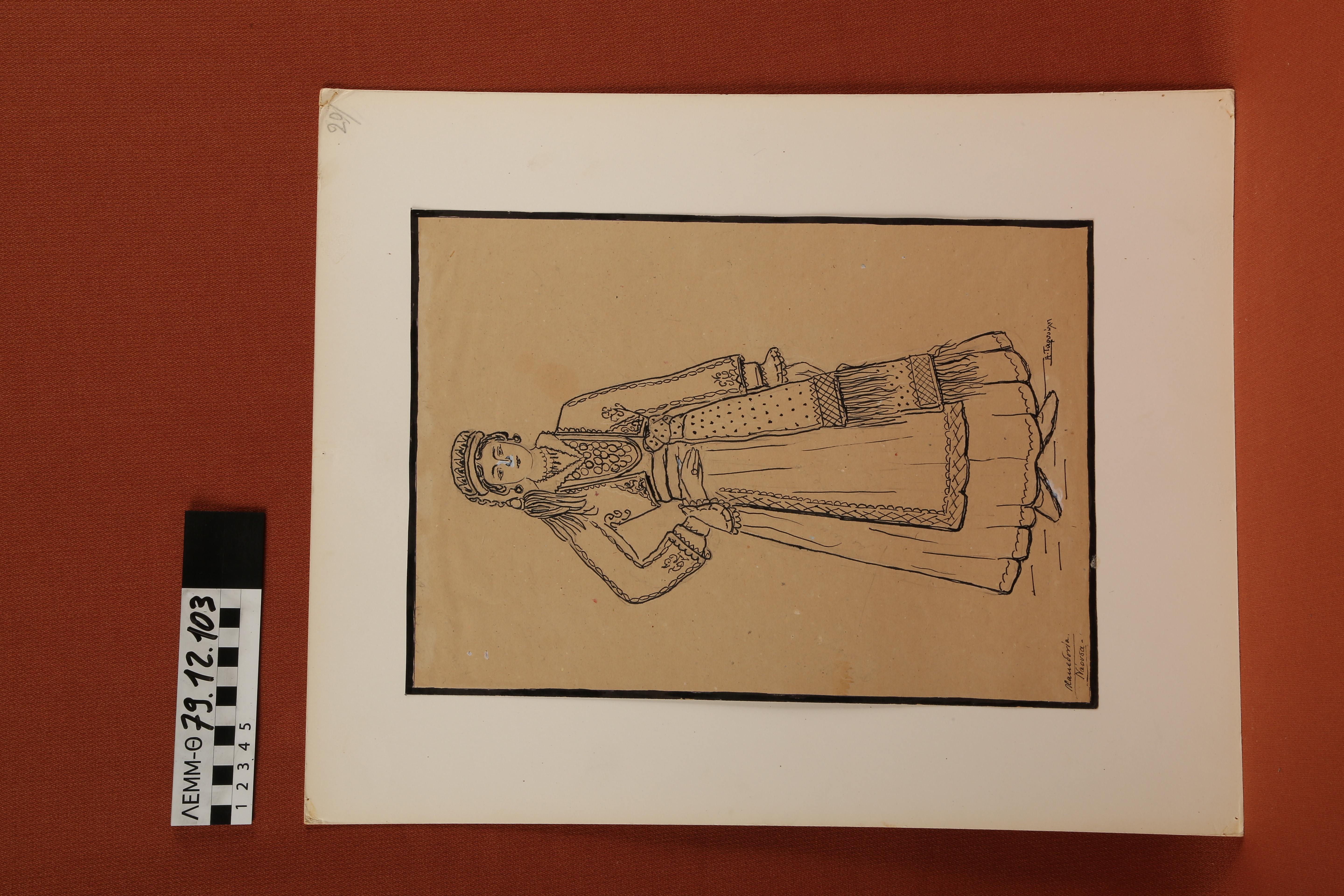 Σχέδιο - σχέδιο, στο οποίο απεικονίζεται γυναίκα με παραδοσιακή ενδυμασία της Νάουσας