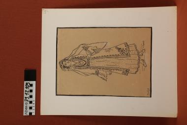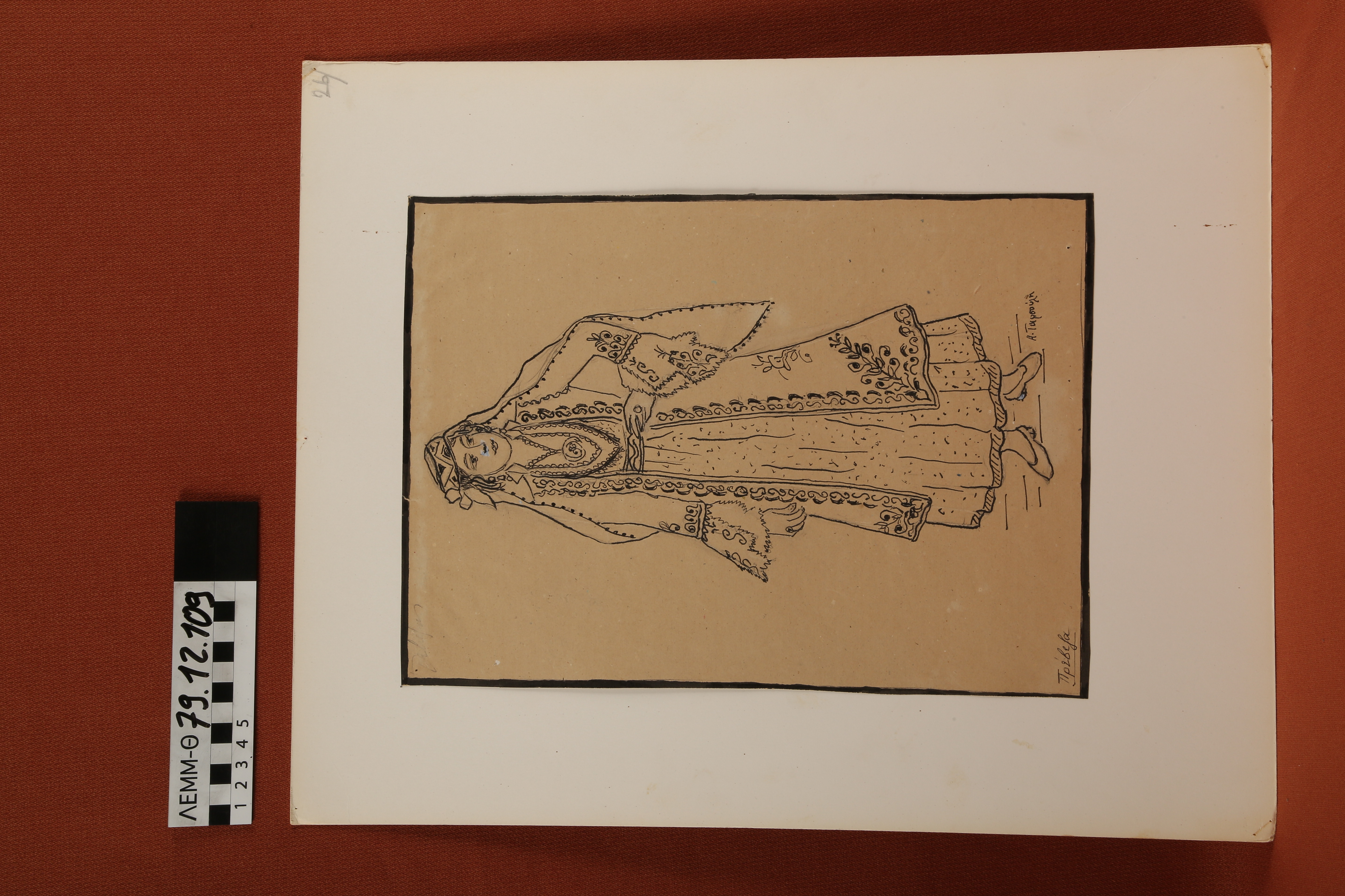 Σχέδιο - σχέδιο, στο οποίο απεικονίζεται γυναίκα με παραδοσιακή φορεσιά της Πρέβεζας