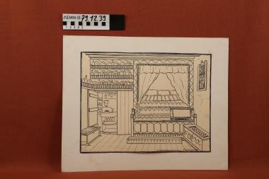 Σχέδιο - σχέδιο, στο οποίο απεικονίζεται το εσωτερικό παραδοσιακής κατοικίας στην Αστυπάλαια, 1948