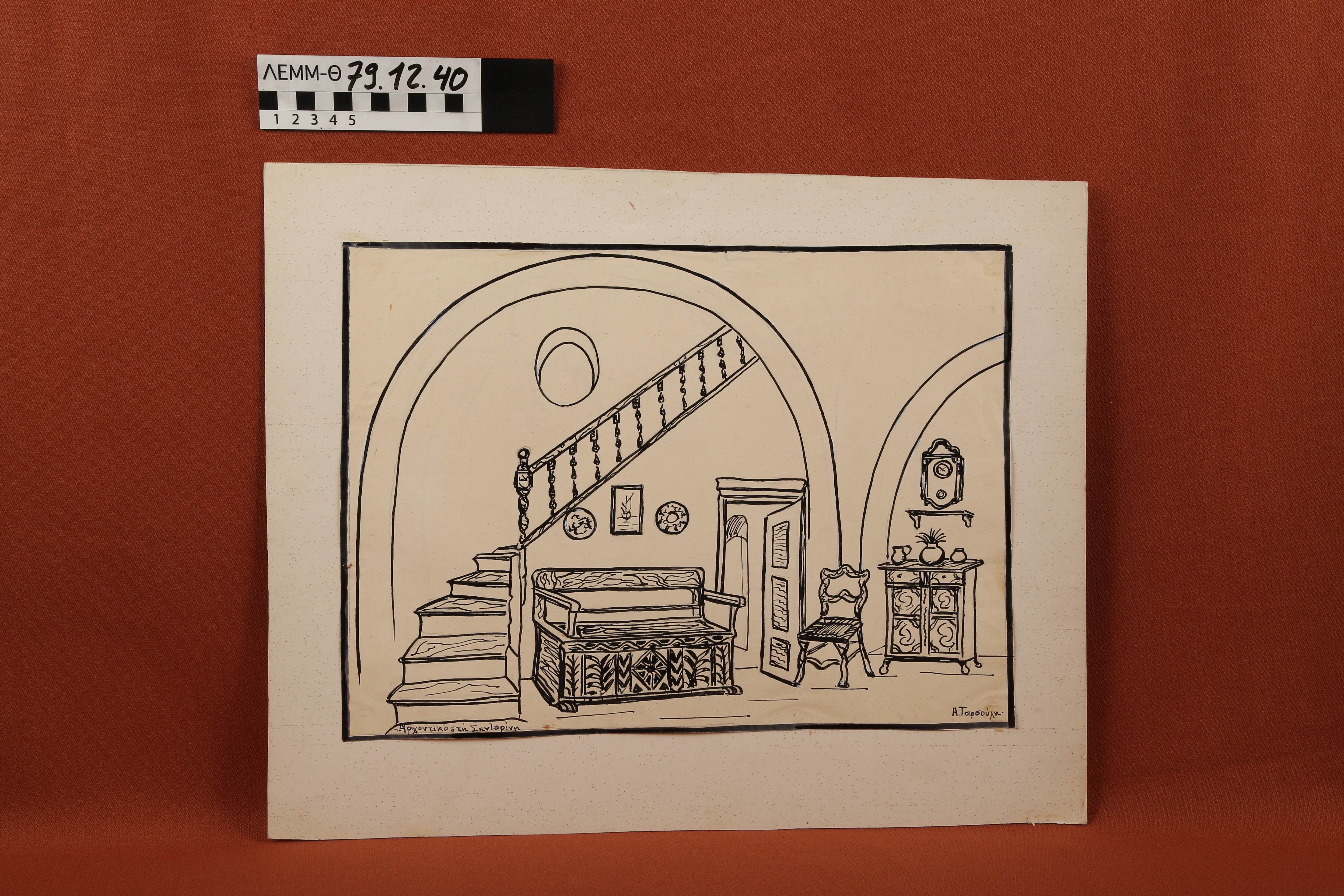 Σχέδιο - σχέδιο, στο οποίο απεικονίζεται το εσωτερικό αρχοντικού στη Σαντορίνη