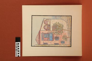 Σχέδιο - έγχρωμο σχέδιο στο οποίο απεικονίζεται η εξωτερική όψη παραδοσιακών κατοικιών του Καστελλόριζου