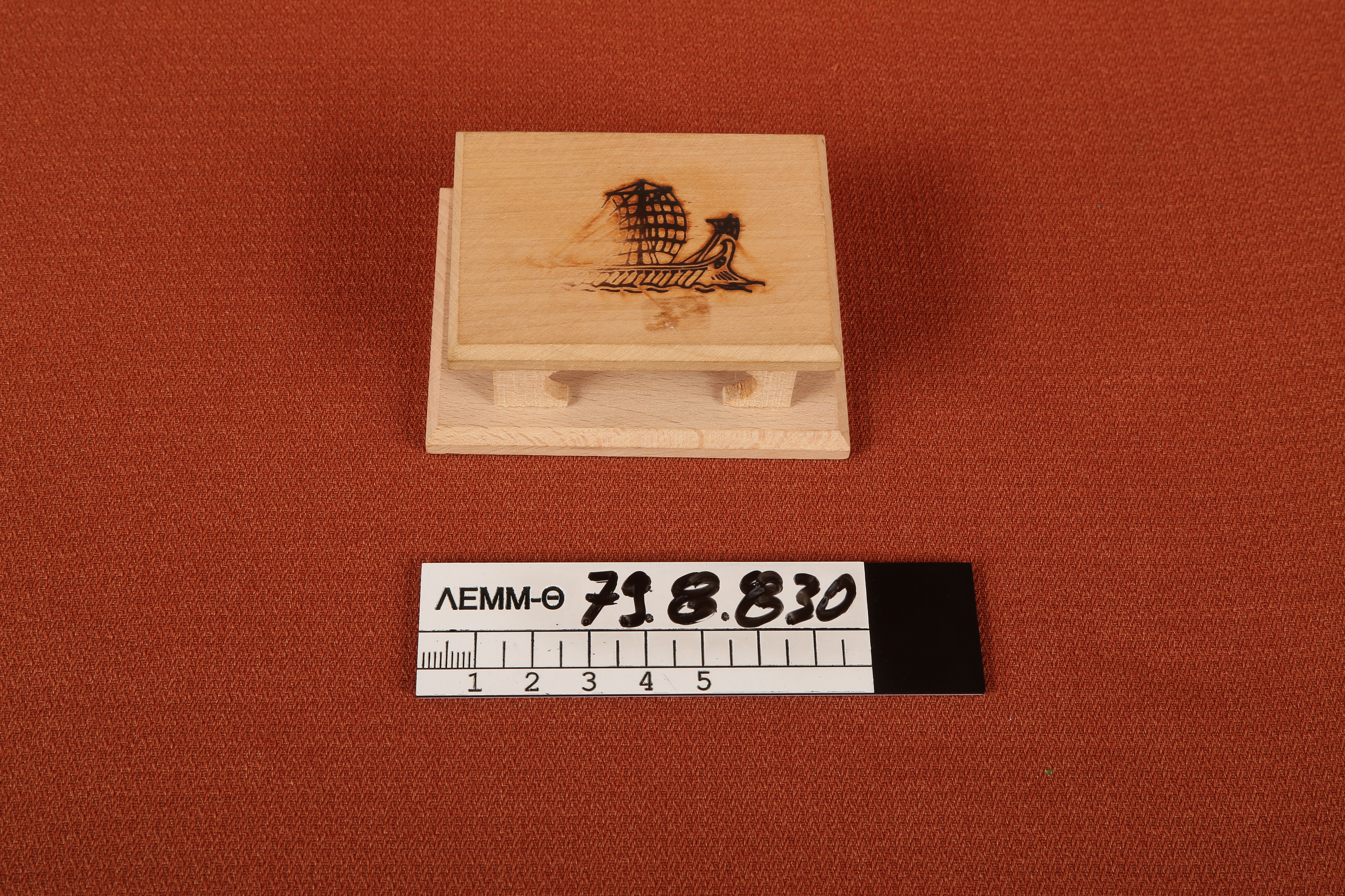 Θήκη για σπιρτόκουτο - ξύλινη, διακοσμημένη θήκη για σπιρτόκουτα με σχέδιο στο οποίο απεικονίζεται τριήρης