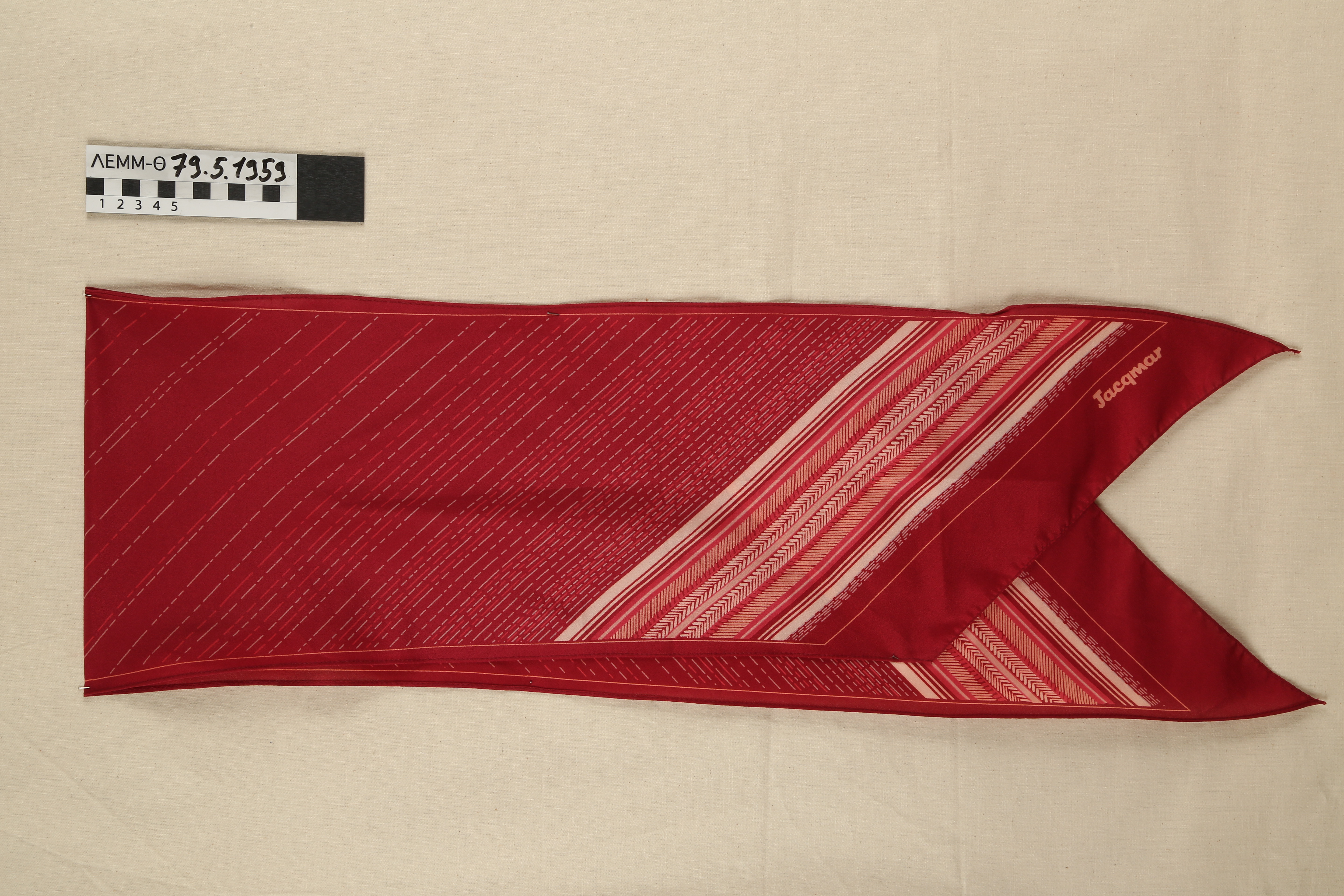 Φουλάρι - μακρόστενο φουλάρι, σε βυσσινί χρώμα, της αγγλικής εταιρείας "Jacqmar"