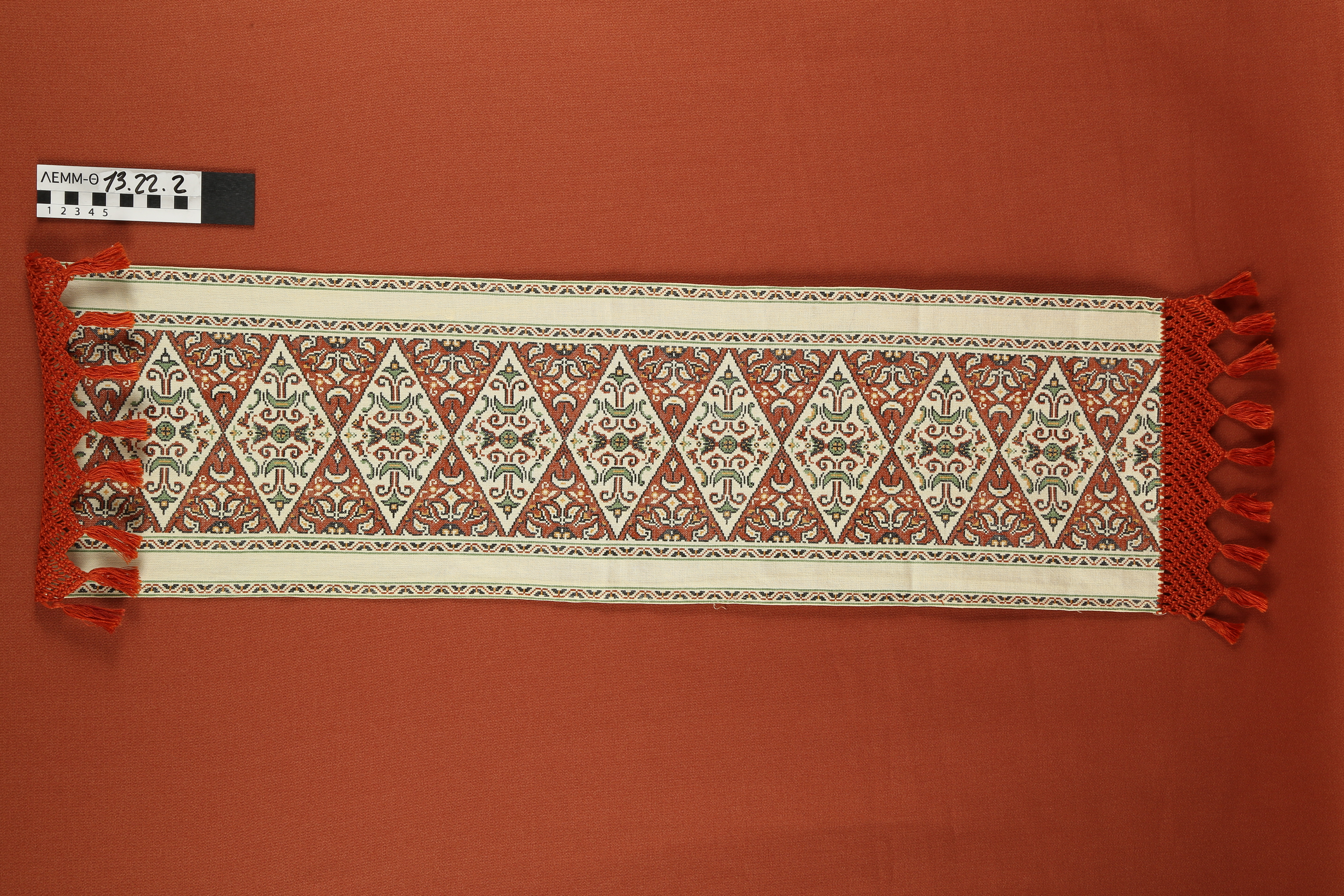 Κέντημα - μετρητό κέντημα σε στενόμακρο κίτρινο κάμπο με κρόσσια