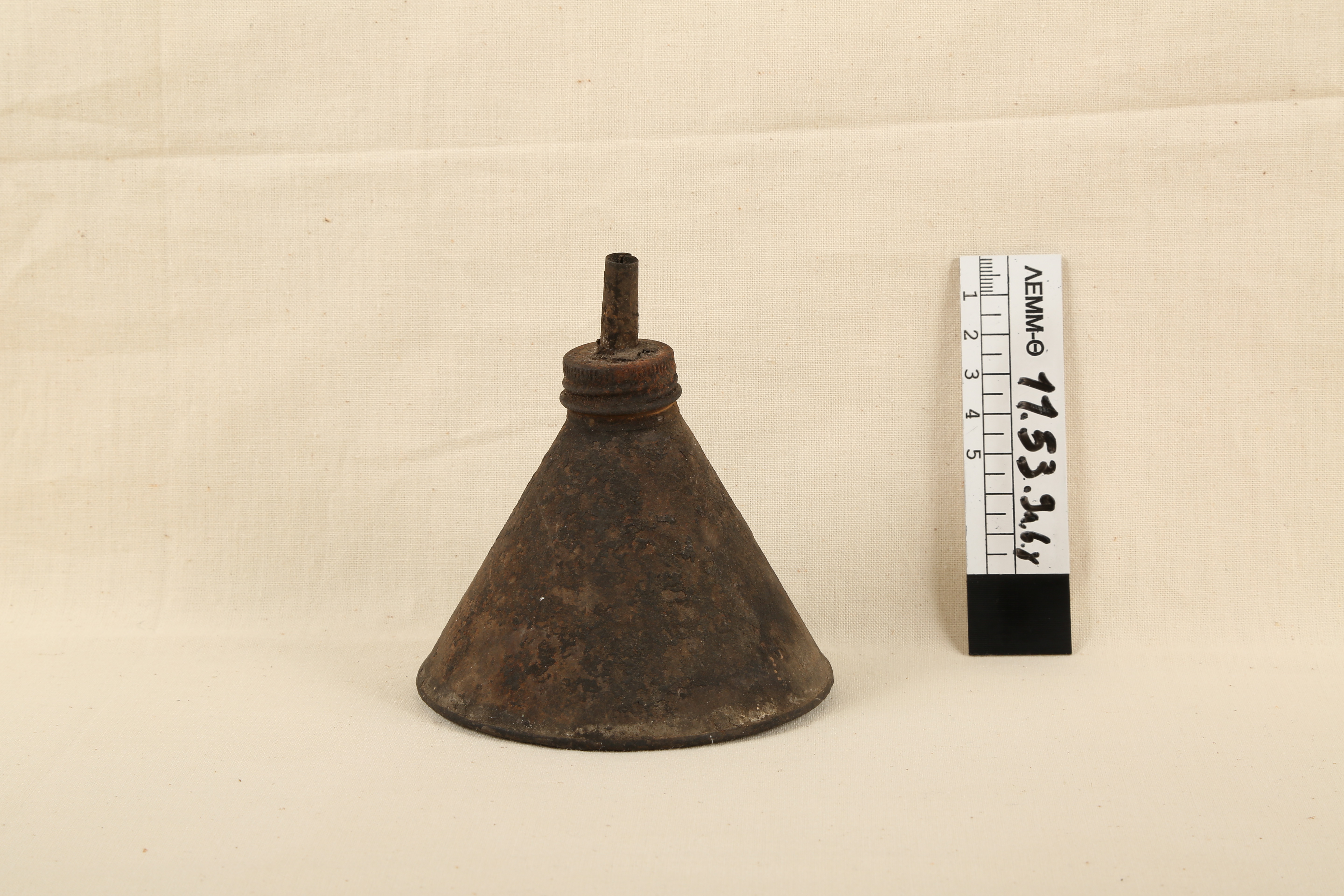 Λυχνάρι - σιδερένιο λυχάρι σε κωνικό σχήμα, με καπάκι και μικρό κυλινδρικό εξάρτημα, α' μισό του 20ού αιώνα