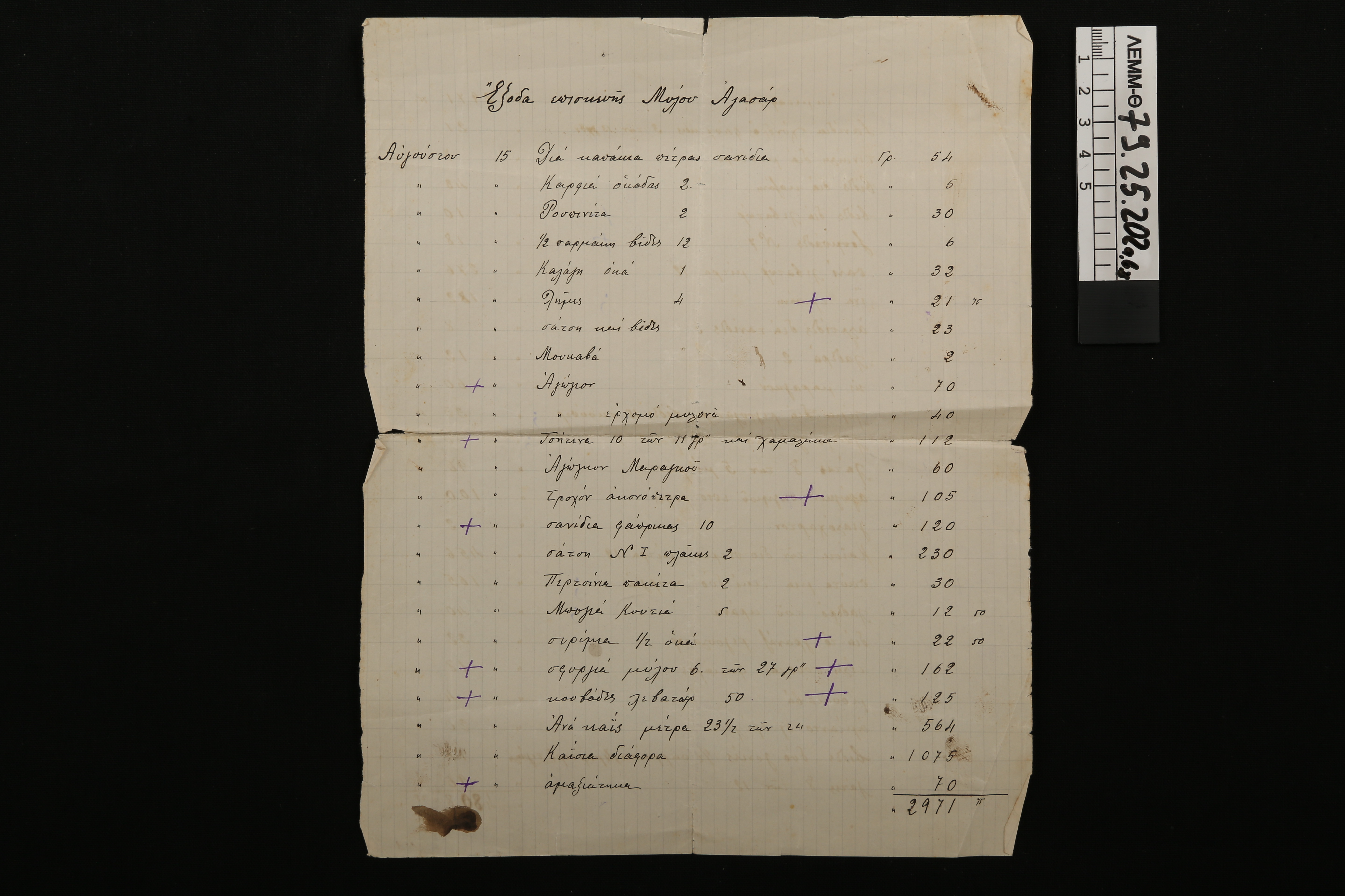 Οικονομικά έγγραφα αλευρόμυλου - τρεις σελίδες με χειρόγραφες σημειώσεις για τα έξοδα επισκευής του Μύλου Αγασάρ