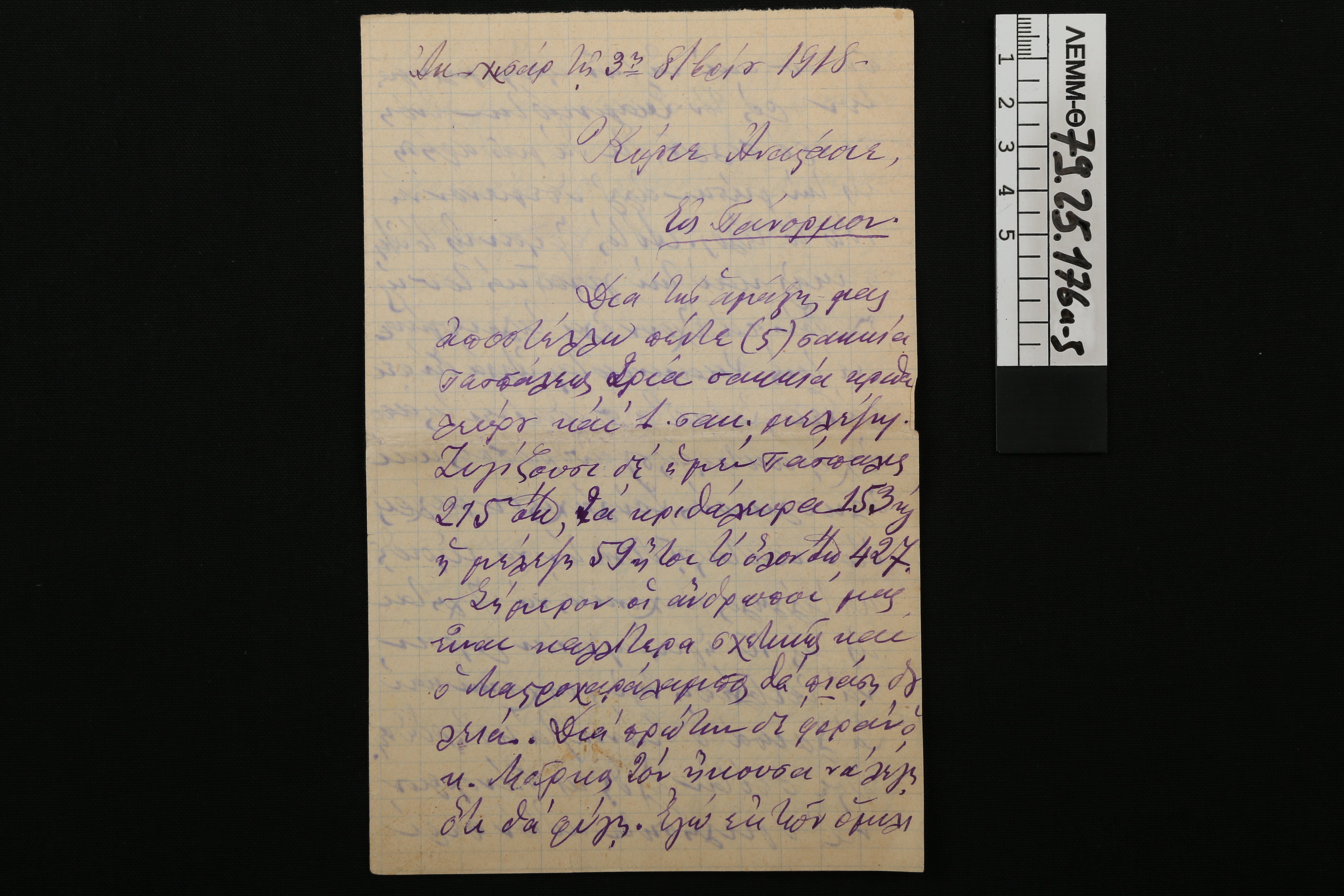 Επιστολές - επτά γράμματα από τον διευθύνοντα του αλευρόμυλου στο Αγά Ισάρ, Σταμίδη Νικόλαο προς τον Αναστάσιο Μαλκότση