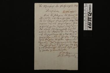 Επιστολή - γράμμα από τον Ν. Ι. Μαλκότση προς τον Αναστάσιο Μαλκότση, για την επίλυση οικονομικού ζητήματος