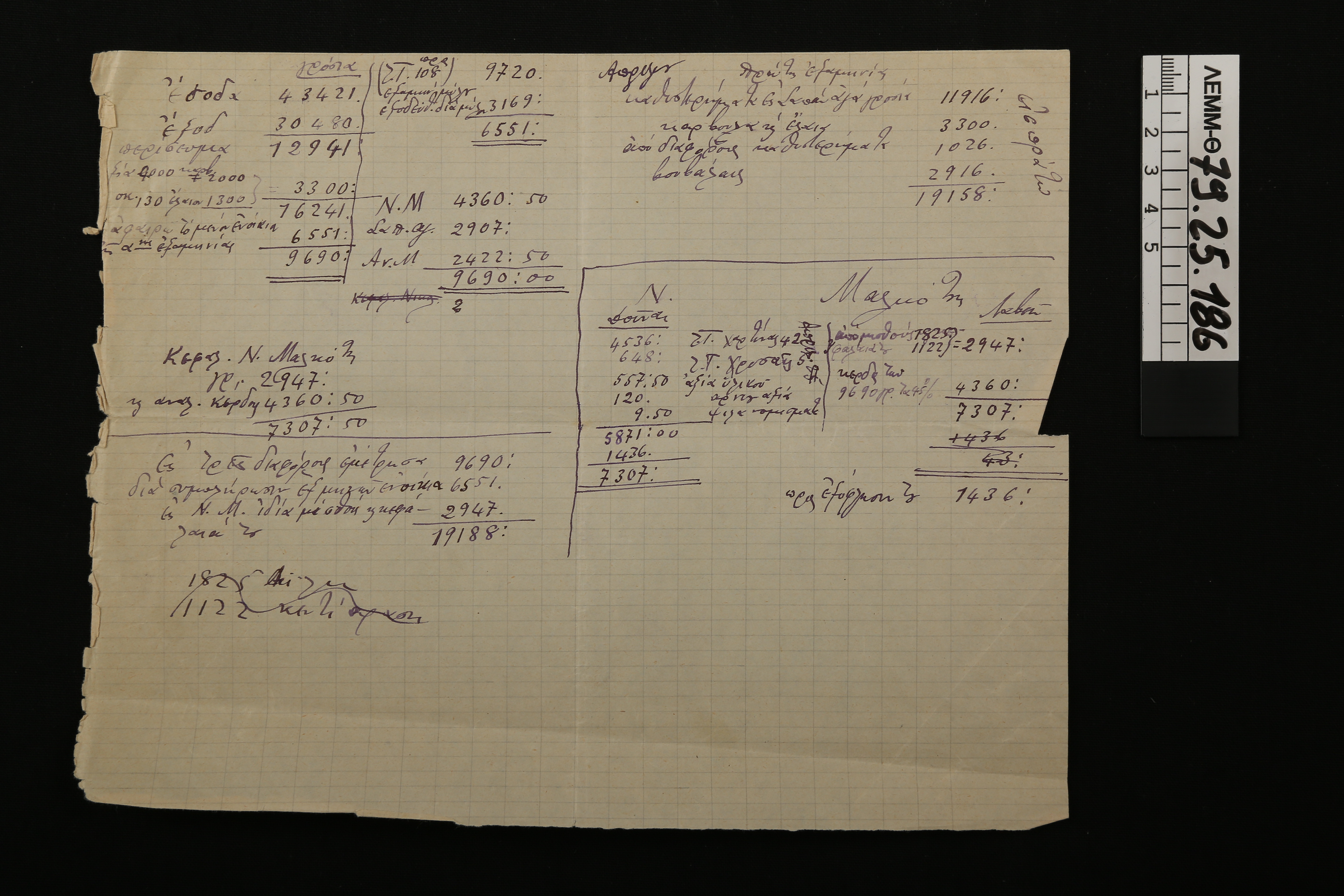Οικονομικό έγγραφο αλευρόμυλου - χειρόγραφο με οικονομικά στοιχεία του αλευρόμυλου στο Αγά Ισάρ