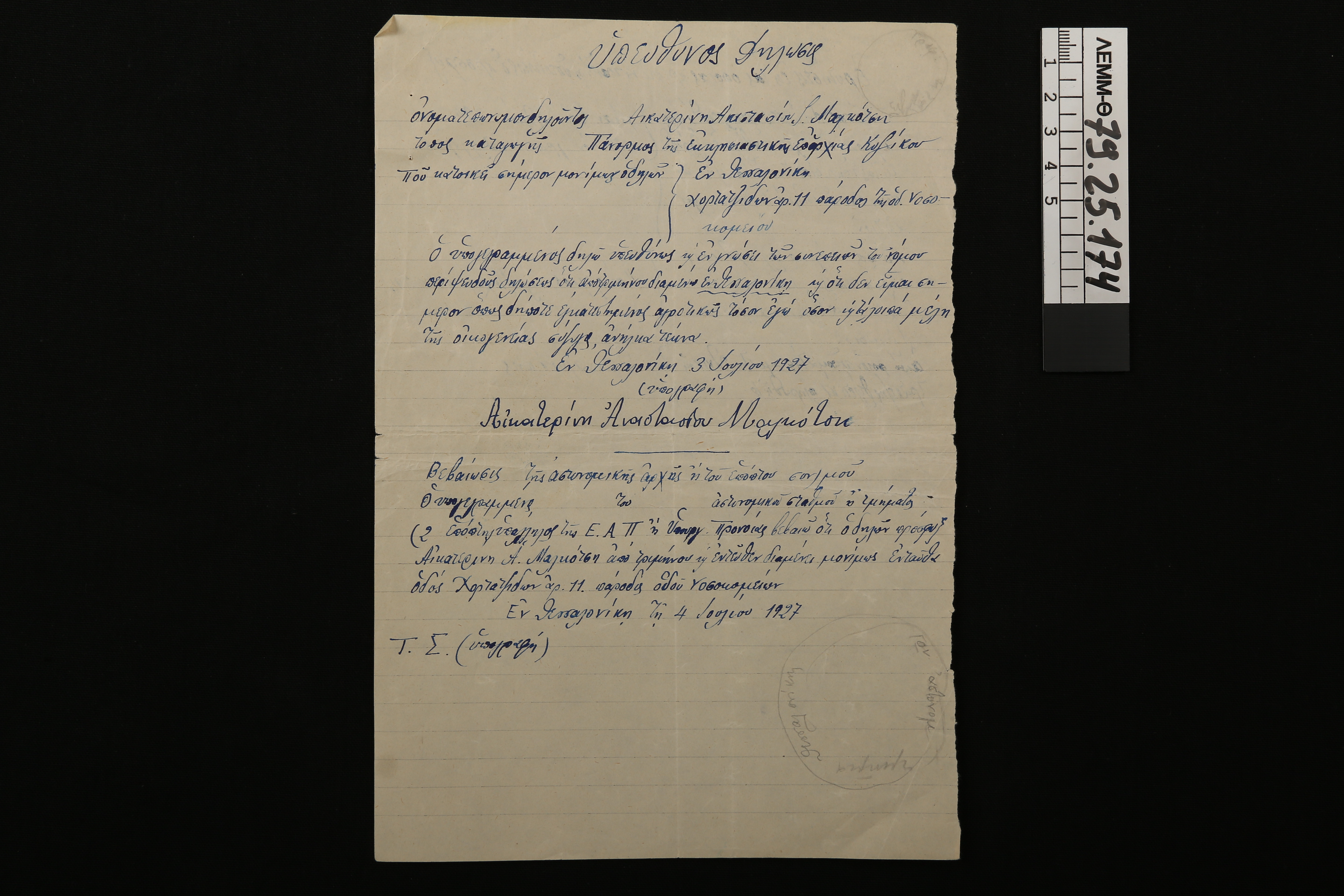 Χειρόγραφο - χειρόγραφο υπόδειγμα υπεύθυνης δήλωσης της Αικατερίνης Αναστασίου Μαλκότση