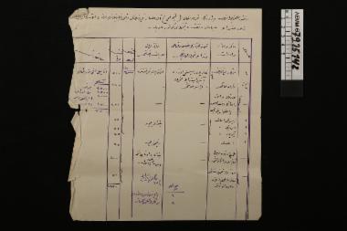 οθωμανικό χειρόγραφο (γραμμένα με μπλε μελάνι) με πινακάκι στη μια όψη. Αφορά την οικονομική κίνηση του αλευρόμυλου στο Αγά Ισάρ, του Αναστάσιου Μαλκότση.