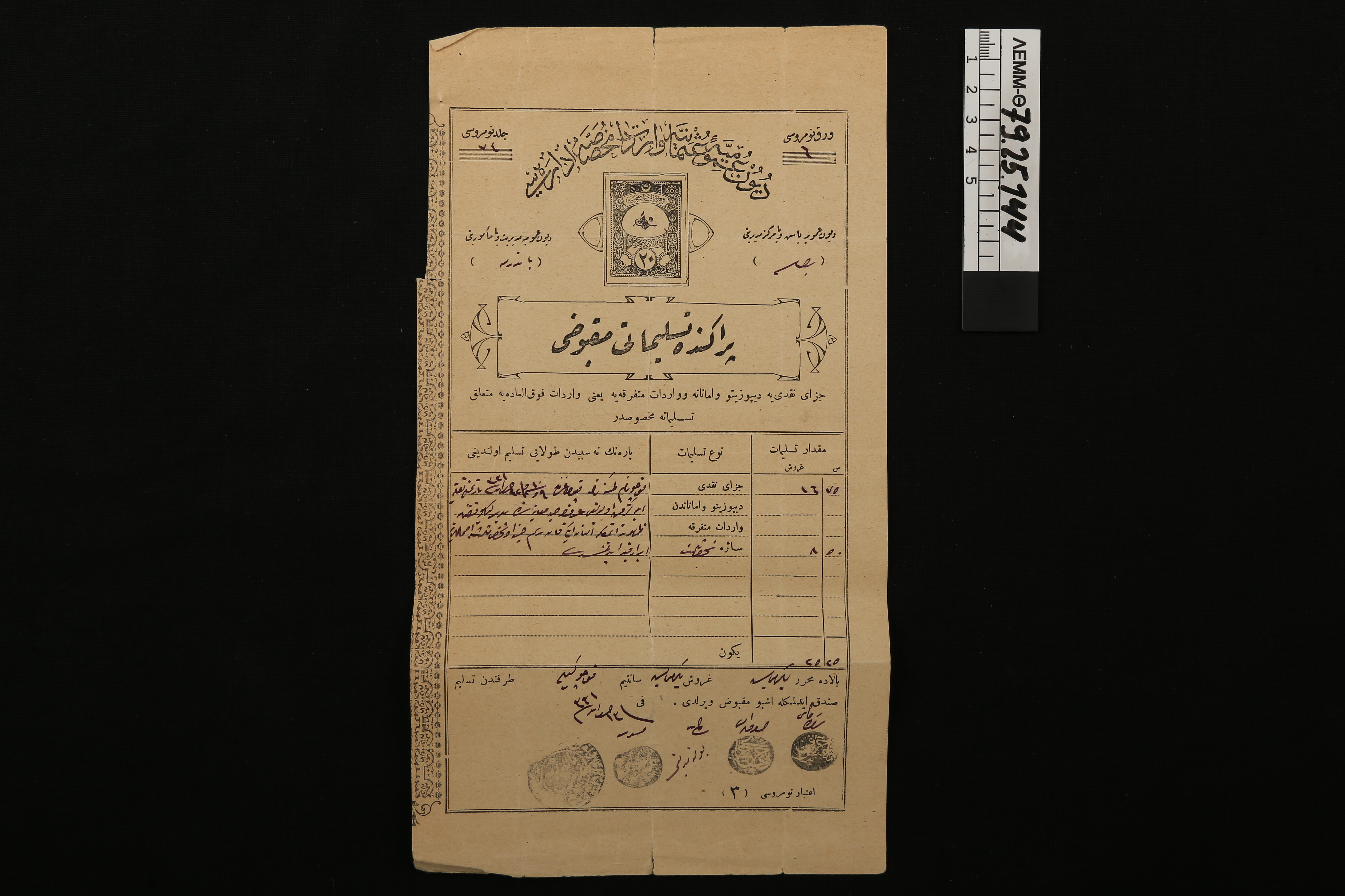 Οικονομικό έγγραφο αλευρόμυλου - οθωμανικό έγγραφο σχετικά με την οικονομική κίνηση του αλευρόμυλου του Αναστάσιου Μαλκότση