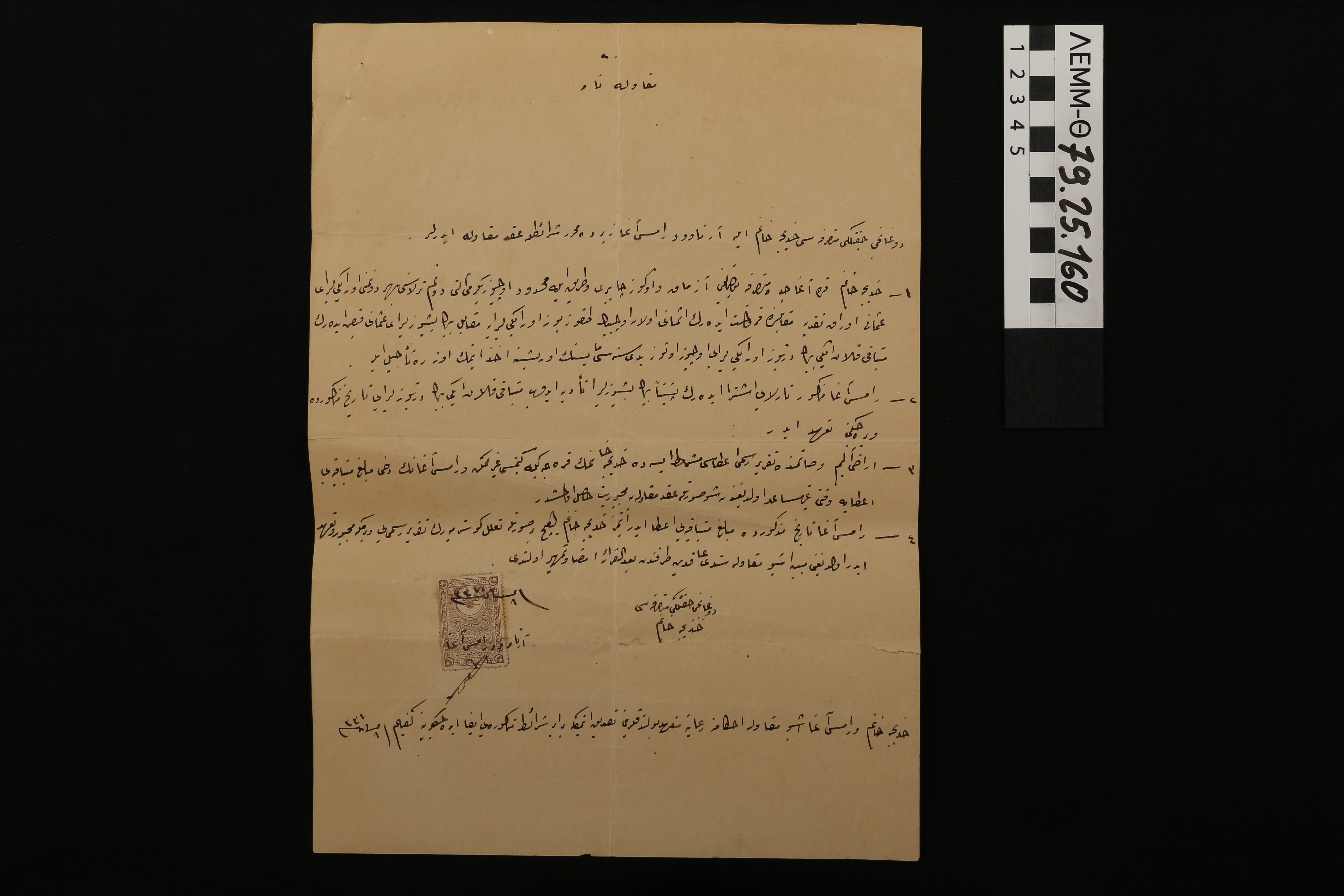 Χειρόγραφο - οθωμανικό έγγραφο με ένα επικολλημένο χαρτόσημο