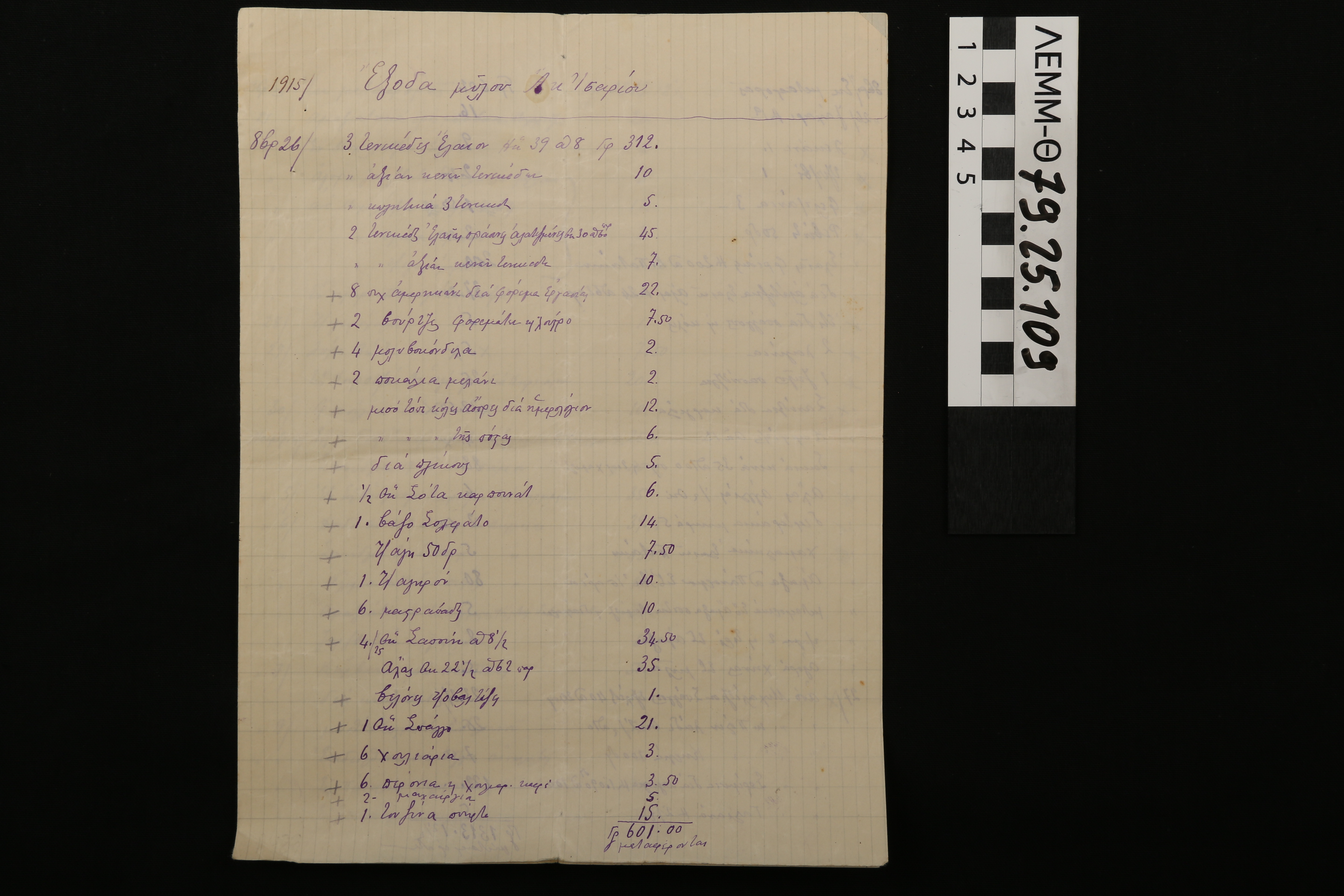 Χειρόγραφο - έξοδα του αλευρόμυλου, του Αναστάσιου Μαλκότση στο Αγά Ισάρ