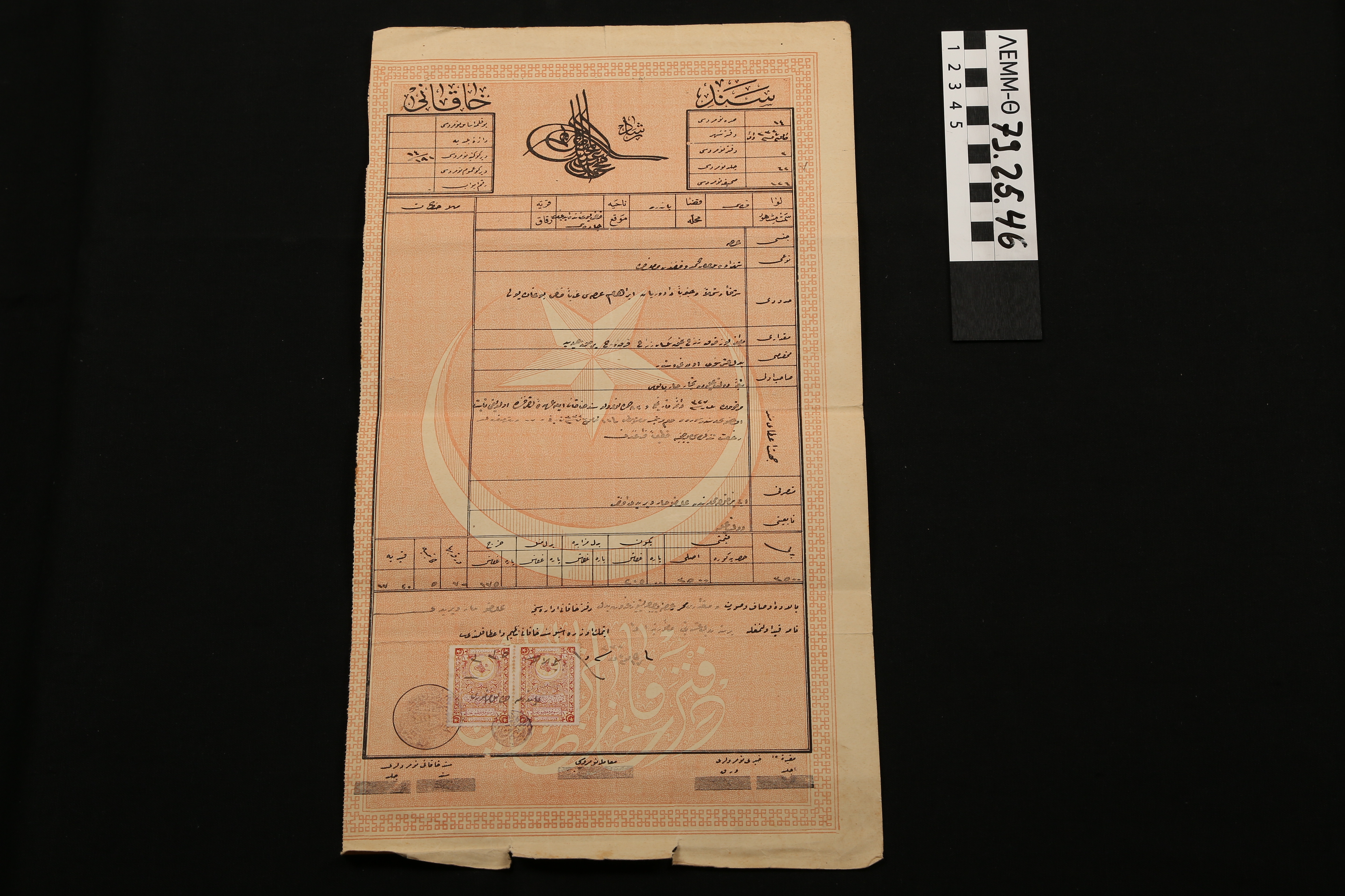 Οθωμανικό έγγραφο - τίτλος κυριότητας οικοπέδου, του Αντώνιου Κάλφα