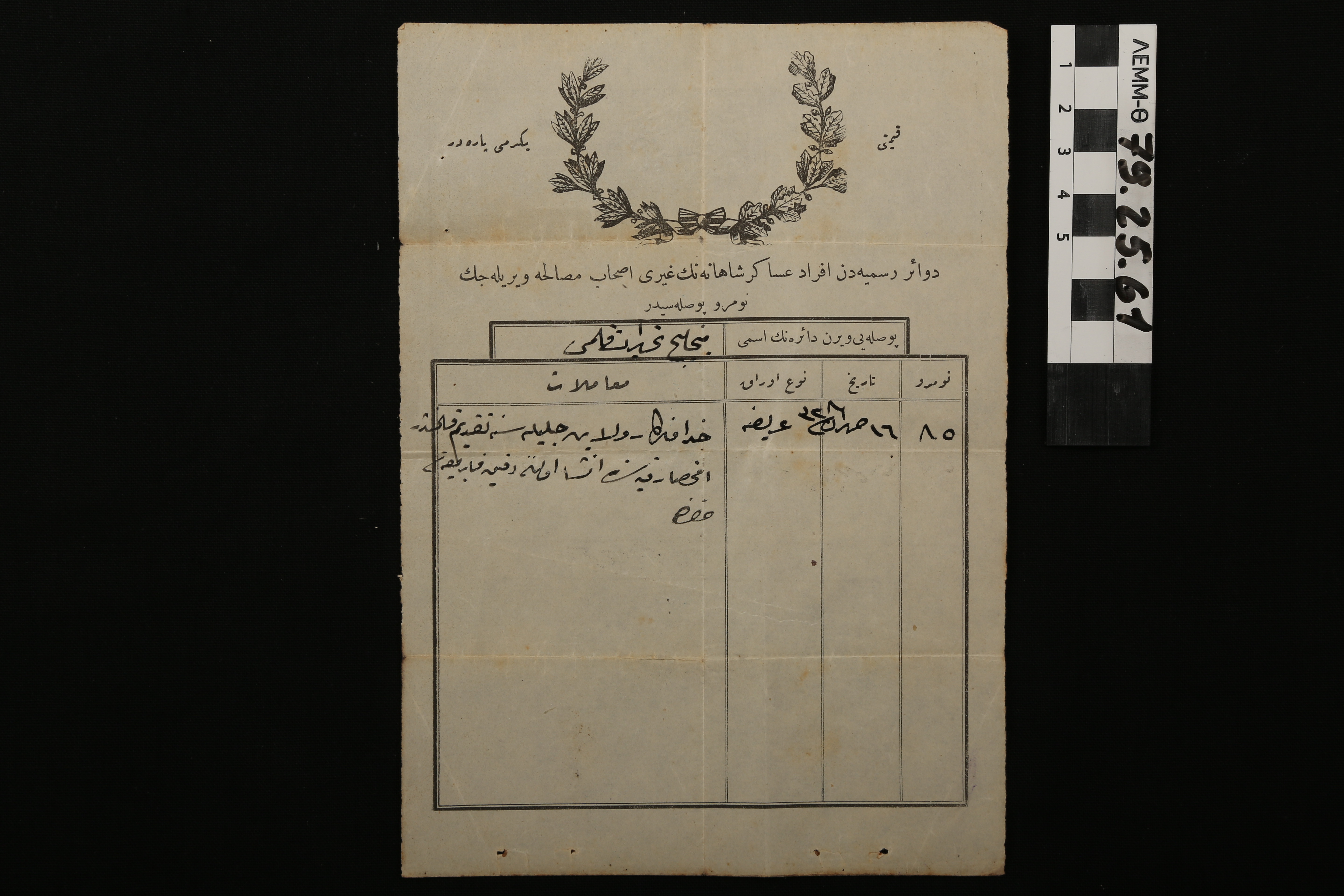 Οθωμανικό έγγραφο - μικρό έγγραφο με υμικυκλικό στεφάνι και ανάγλυφη στάμπα