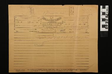 ορθογώνιο έγγραφο σε σκούρο μπεζ χρώμα, με δύο τυπωμένους, μικρούς πίνακες (αποστολής - παραλαβής) και γραμμές. Στο κέντρο υπάρχει το οθωμανικό άστρο της σελήνης (ημισέληνος και πεντάστερο) και επιγραφές στην γαλλική και οθωμανική γραφή ("Ministere Des Postes, Des Telegraphes et Des Telephones"). Στην πίσω όψη υπάρχει χειρόγραφη σημείωση στην ελληνική γλώσσα ".... μύλου αγα-σαρ".
