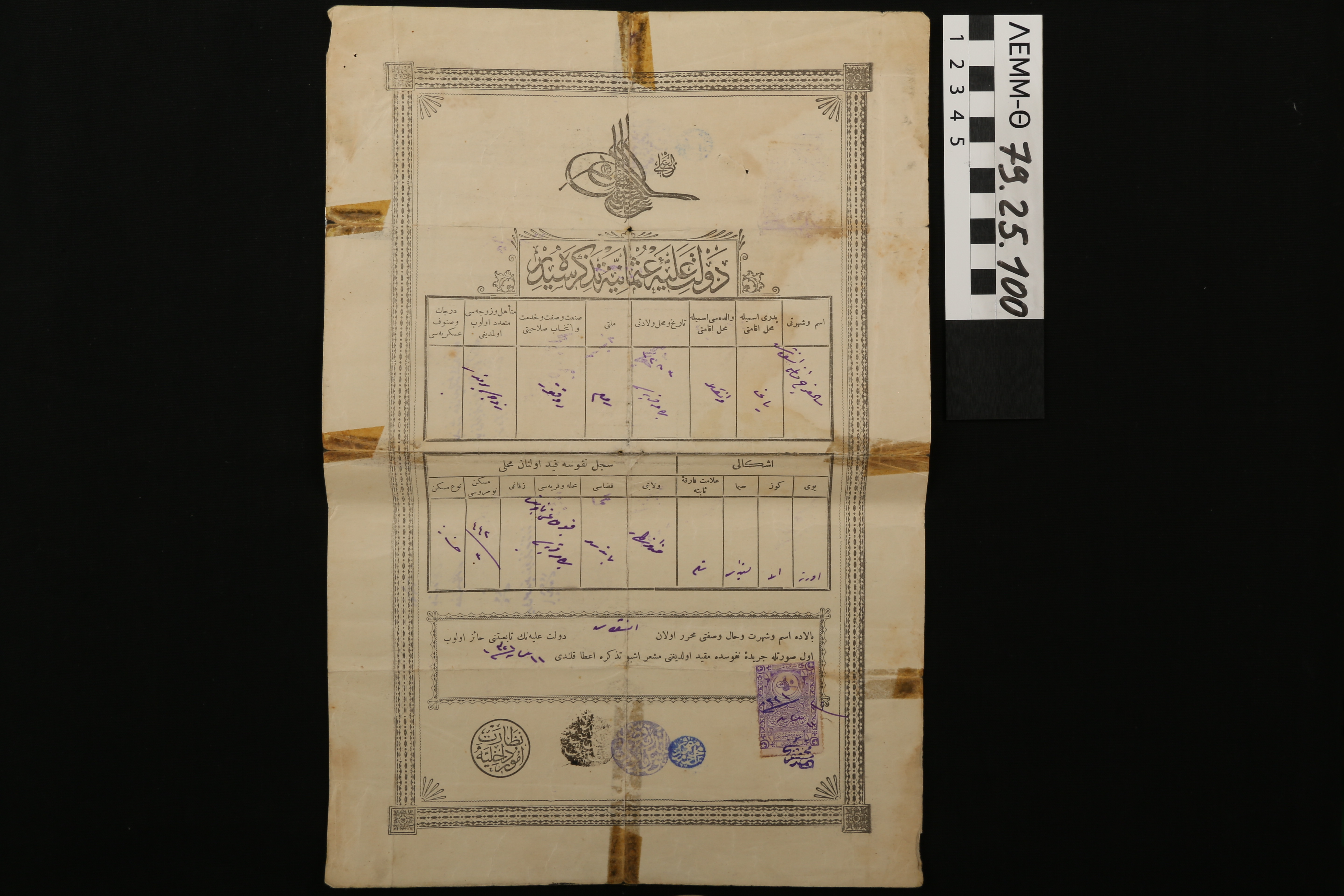 Οθωμανικό δελτίο ταυτότητας - έγγραφο με τα προσωπικά στοιχεία του Αναστάσιου Μαλκότση