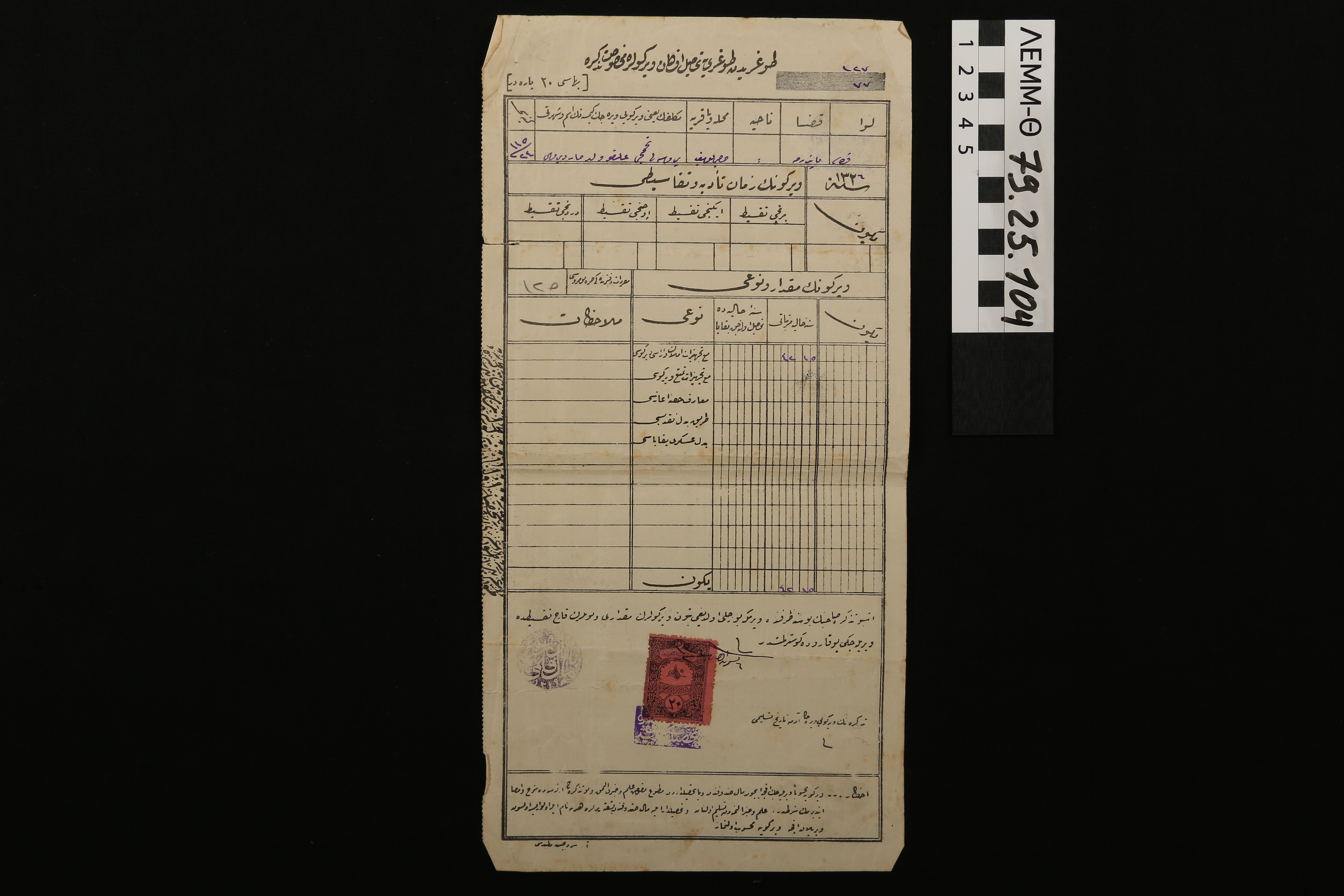 Οθωμανική απόδειξη - οθωμανικό έγγραφο φόρου με ροζ χαρτόσημο
