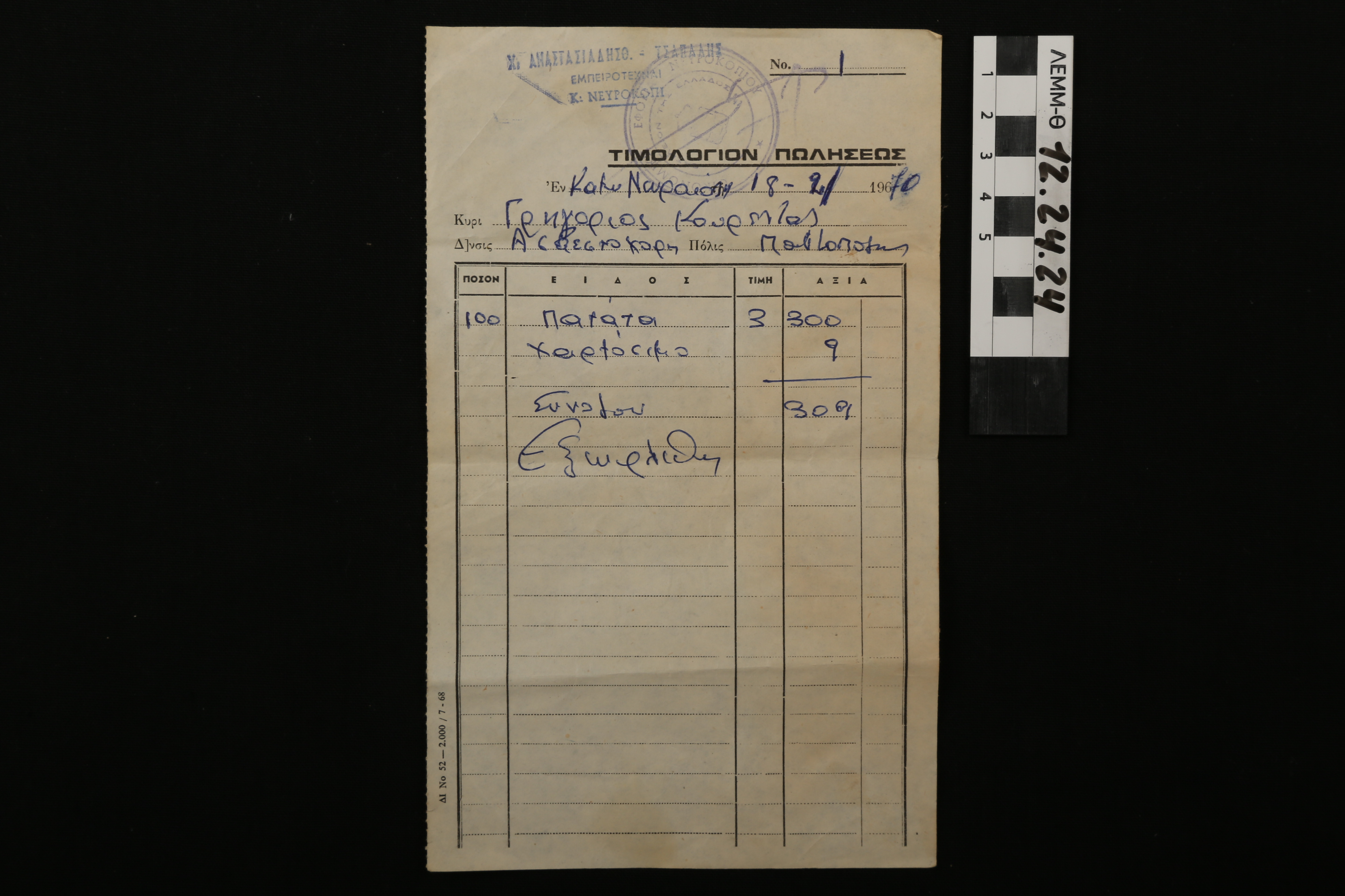 Τιμολόγιο - απόδειξη αγοράς στο όνομα Γρηγόρης Κουρέντας