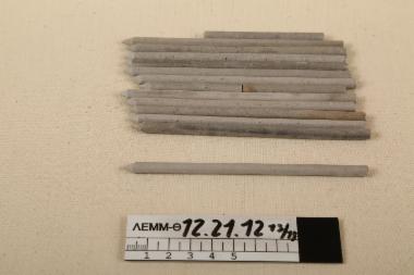 δεκατρία τεμάχια (το ένα σπασμένο στη μέση και ένα επιπλέον μισό τεμάχιο) γραφικής ύλης σε σχήμα μικρού μολυβιού, κατασκευασμένα από σχιστόλιθο. Χρησιμοποιούνταν για να γραφή σε μαυροπίνακα και συνοδεύονται από ένα ξύλινο κουτί αποθήκευσης γαλλικής κατασκευής. (EL)