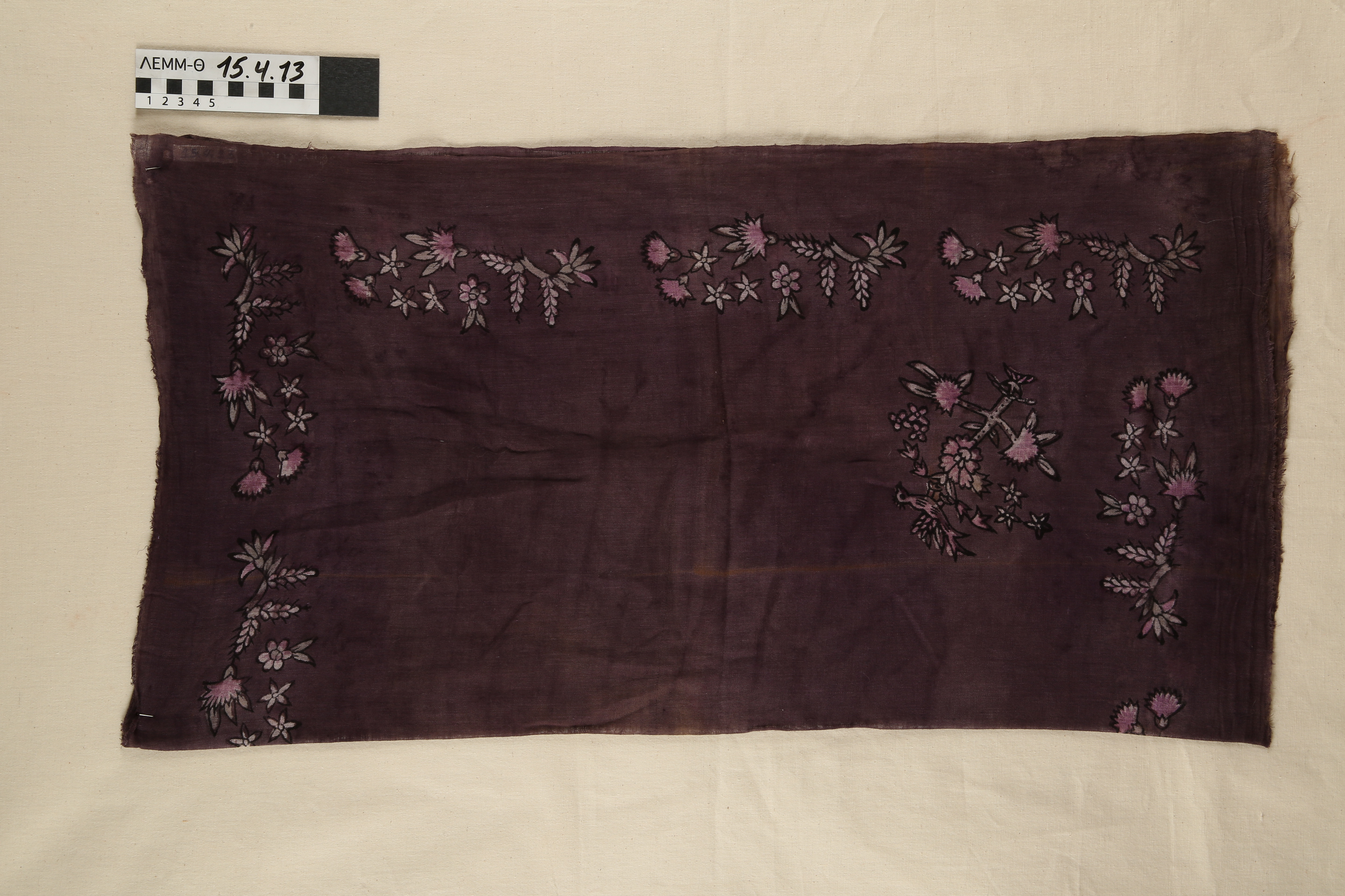 Μαντίλα - βαμβακερή μαντίλα σε μελιτζανί χρώμα, διακοσμημένη με ανθικά μοτίβα