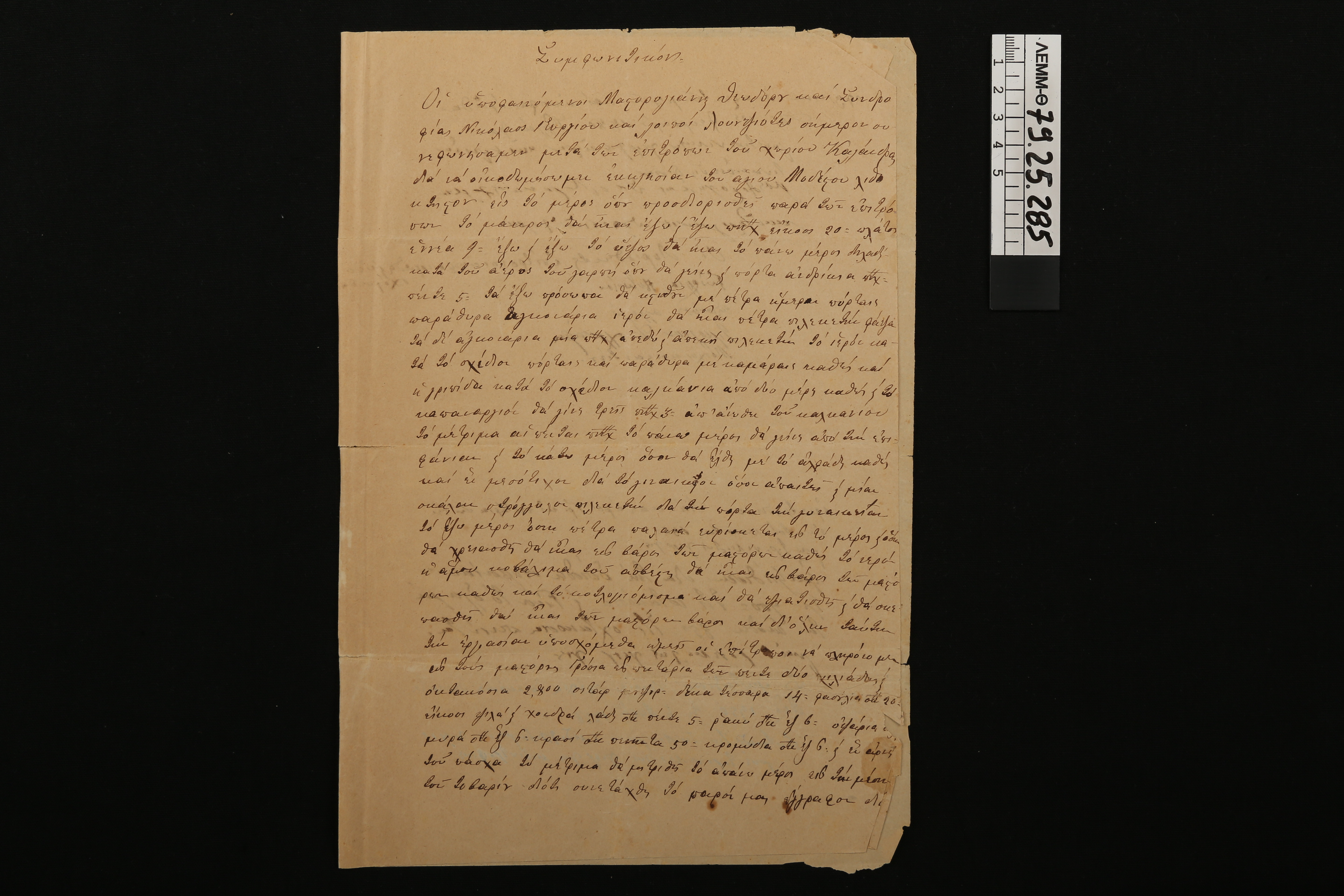 Συμφωνητικό - συμφωνητικό έγγραφο μεταξύ μαστόρων και των επιτρόπων του χωριού Καλάνδρας για να κτιστεί η εκκλησία του Αγίου Μοδέστου