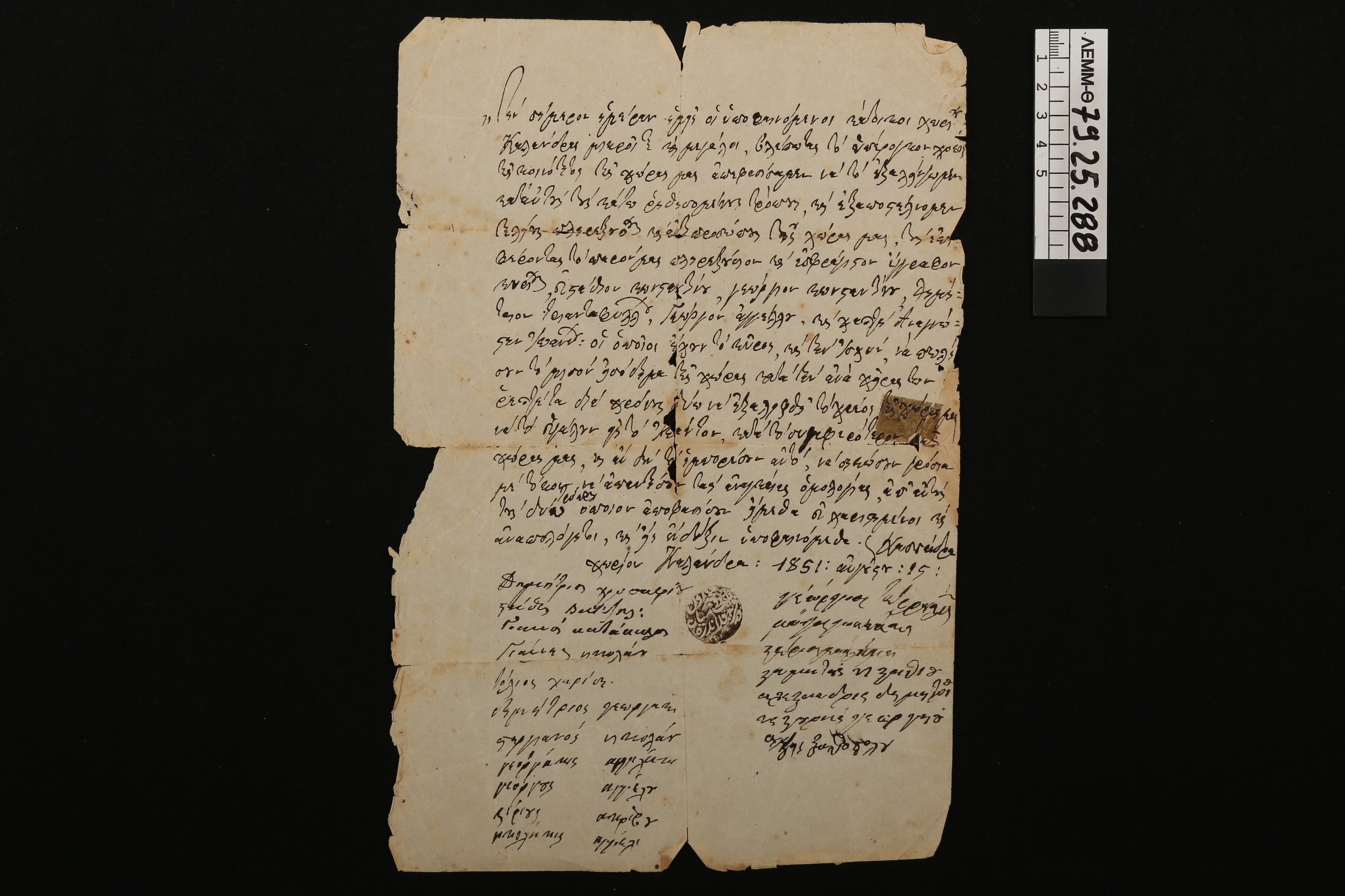 Πληρεξούσιο - πληρεξούσιο από τους κατοίκους της Καλάνδρας προς τους εκπροσώπους της χώρας σχετικά με την βοήθεια για την εξόφληση του χρέους της κοινότητας τους, 1851