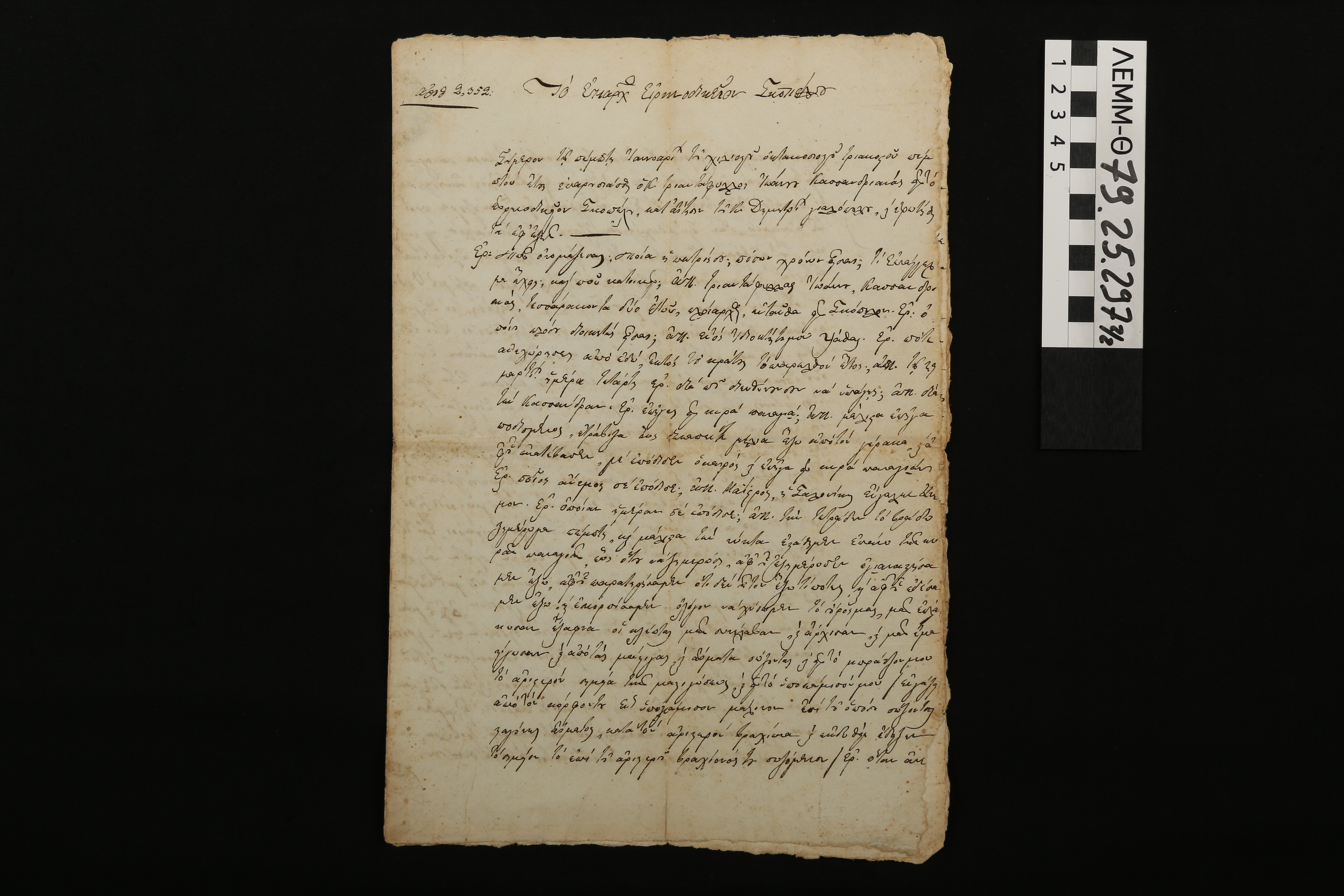 Δικαστικό έγγραφο - καταγεγραμμένη κατάθεση του Τριαντάφυλλου Ιωάννου (ή Ιωάννη) στο Επαρχ. Ειρηνοδικείο Σκοπέλου, 1835