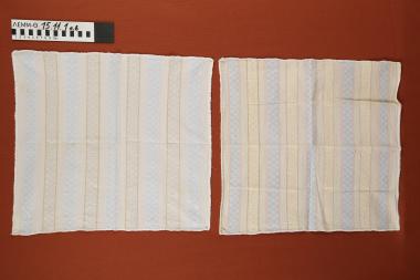 Πετσέτες - ζεύγος υφαντές, βαμβακερές πετσέτες σε λευκό χρώμα με φαρδιές γαλάζιες και μπεζ ρίγες, δεκαετίας 1930