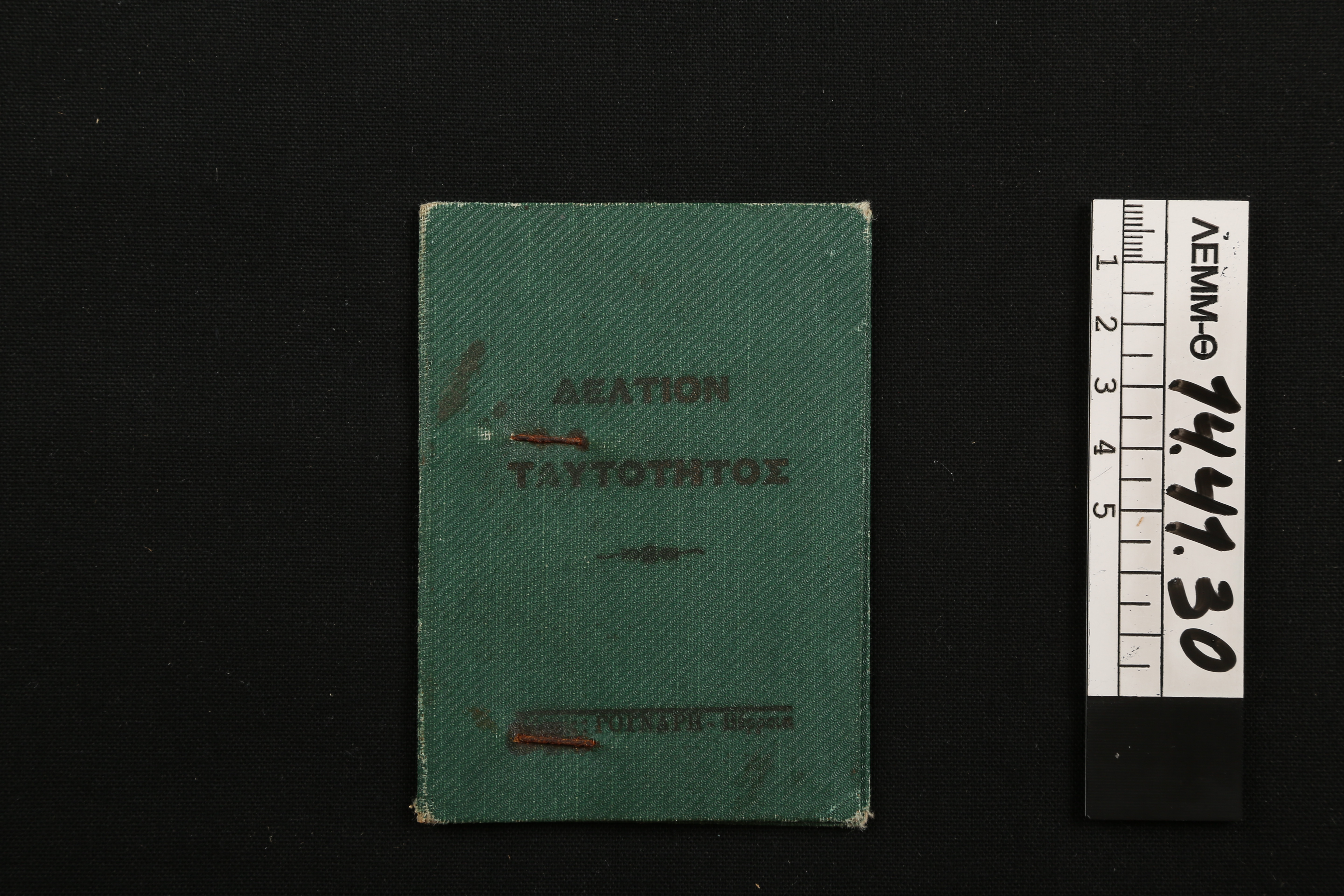 Δελτίο ταυτότητας - πράσινη δίφυλλη υπηρεσιακή ταυτότητα με φωτογραφία του δημοδιδασκάλου Ευστράτιου Σάκκη