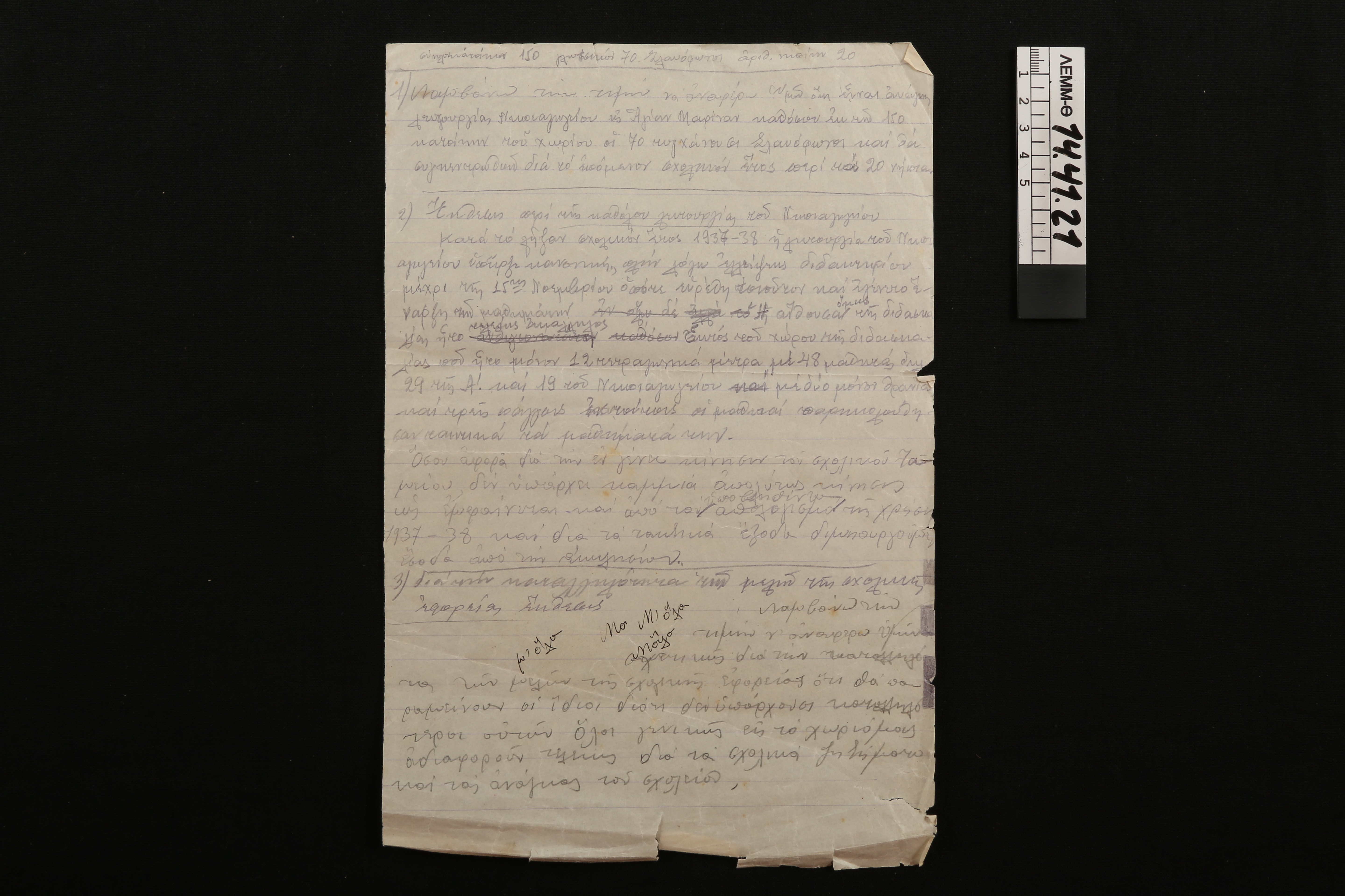 Χειρόγραφο - έγγραφο με σημειώσεις του Ε. Σάκκη αναφορικά με την λειτουργία Νηπιαγωγείου στην Αγία Μαρίνα, Βέροιας