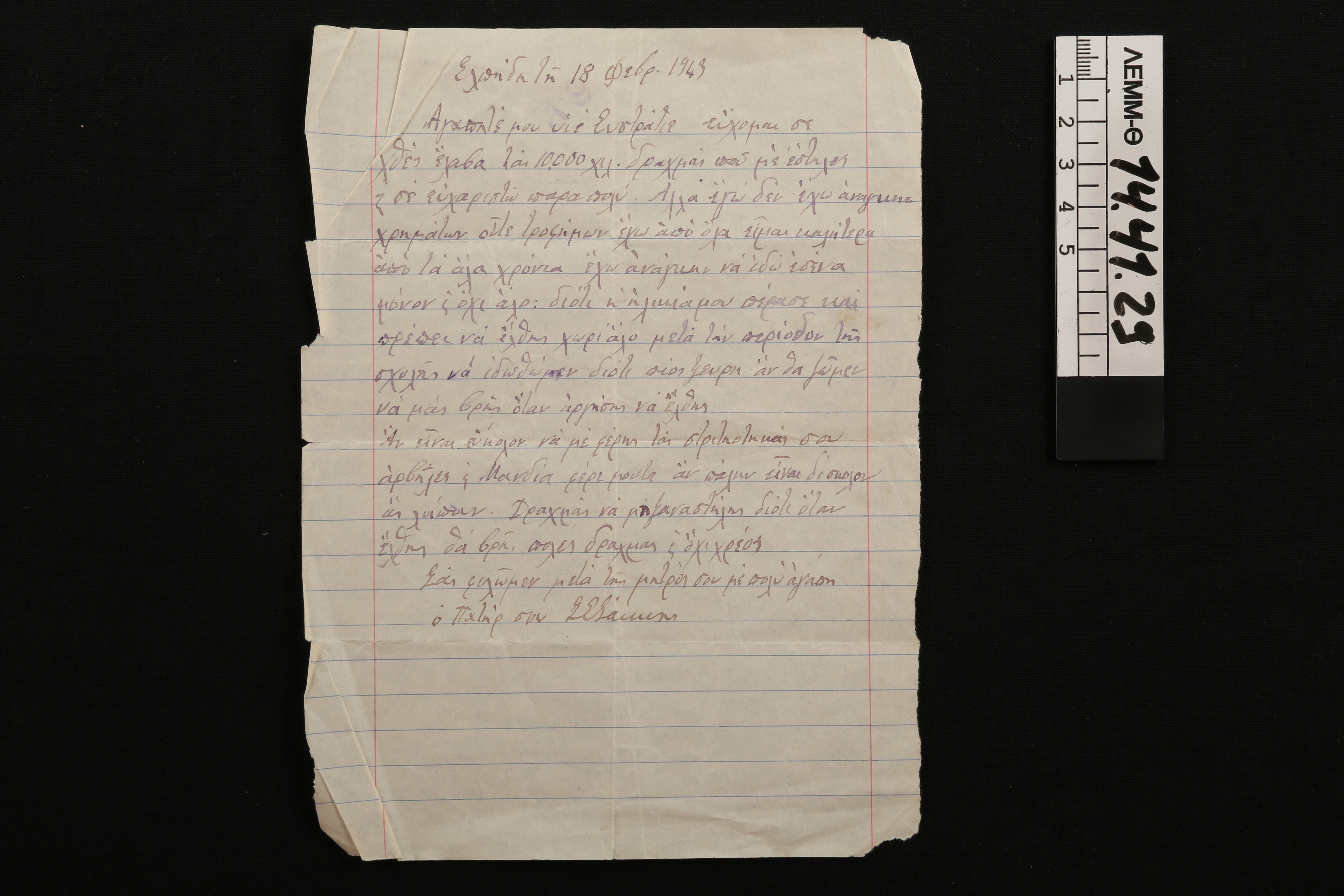 Επιστολή - γράμμα προς τον Ε. Σάκκη από τον πατέρα του