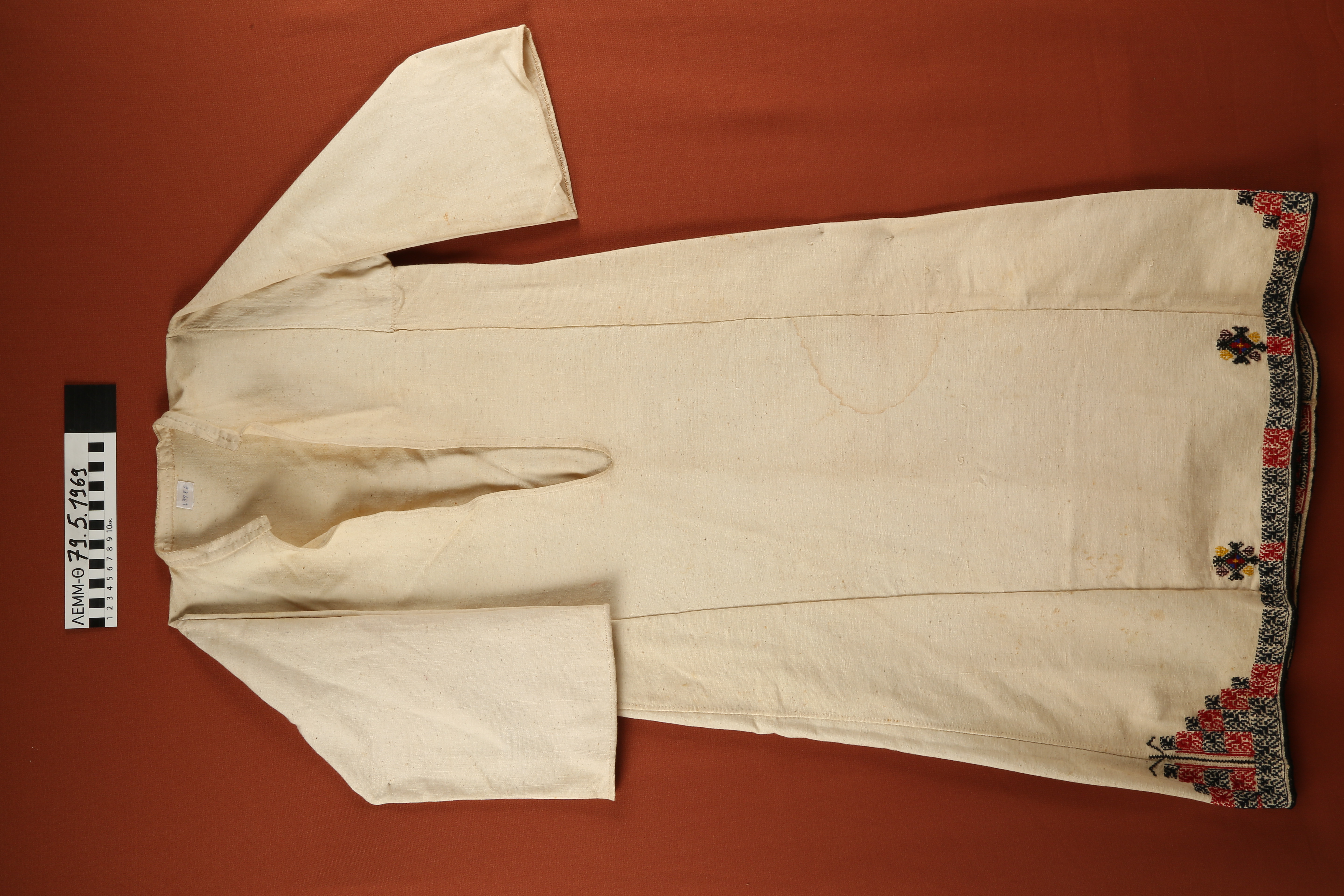 Πουκάμισο - γυναικείο, υφαντό, βαμβακερό μακρύ πουκάμισο με μακριά μανίκια και κεντημένο ποδόγυρο (πιθανόν από Σκοπιά Φλώρινας)
