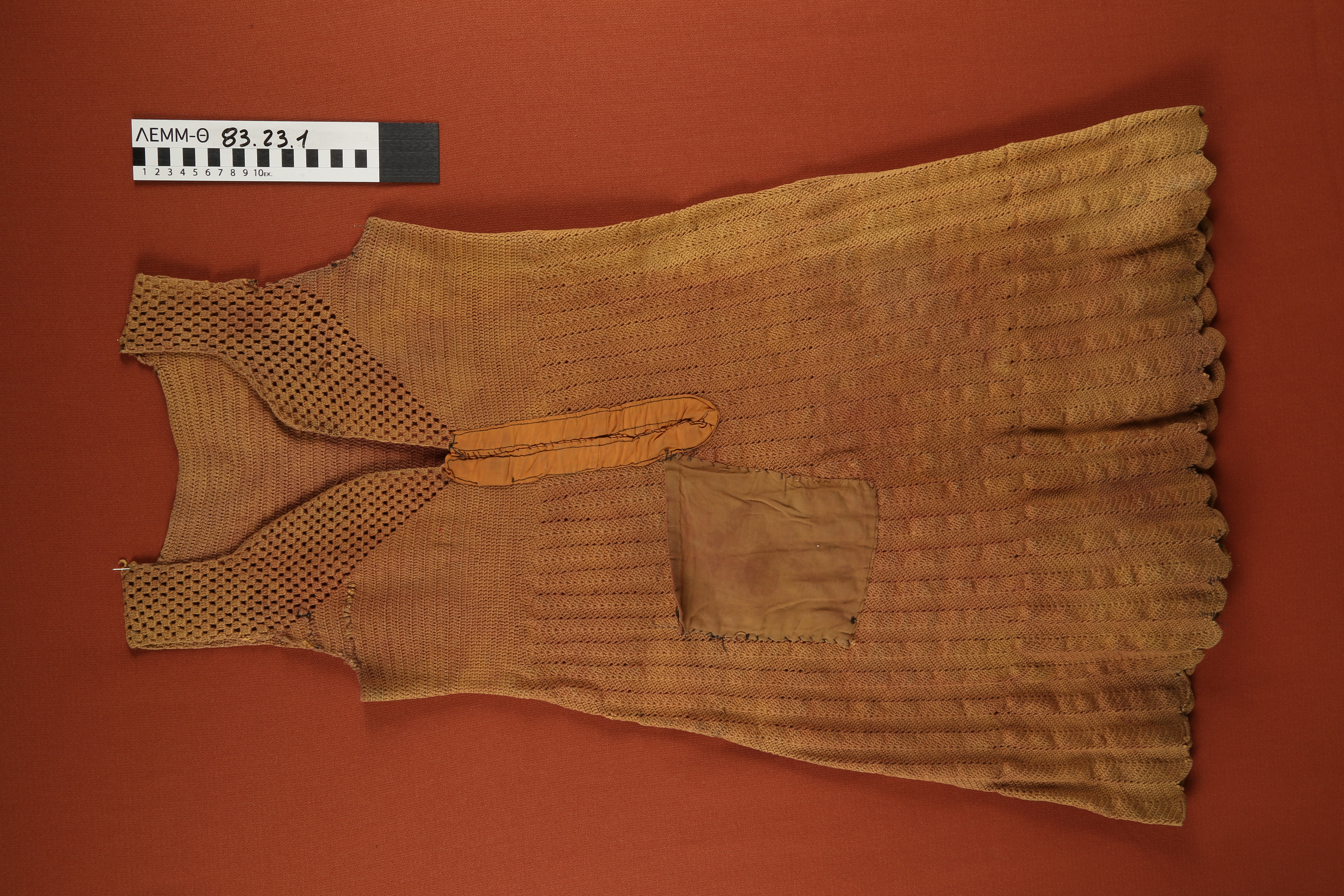 Εσώρουχο - γυναικεία, πλεκτή, αμάνικη, μακριά φανέλα με τσέπη, σε ανοιχτό καφέ χρώμα