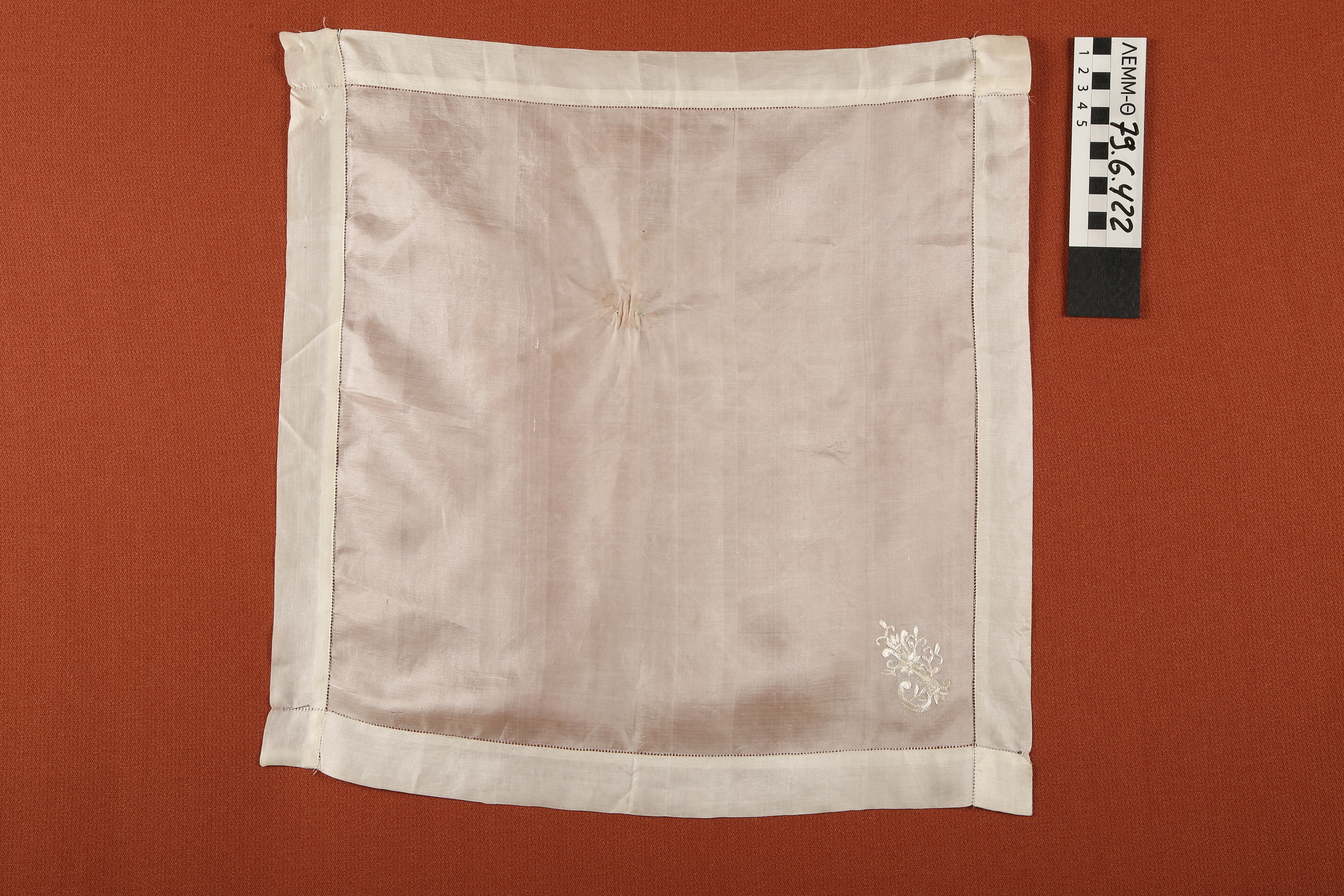 Μαντήλι - μεταξωτό, εκρού μαντήλι χειρός με κεντημένο μονόγραμμα "Κ"