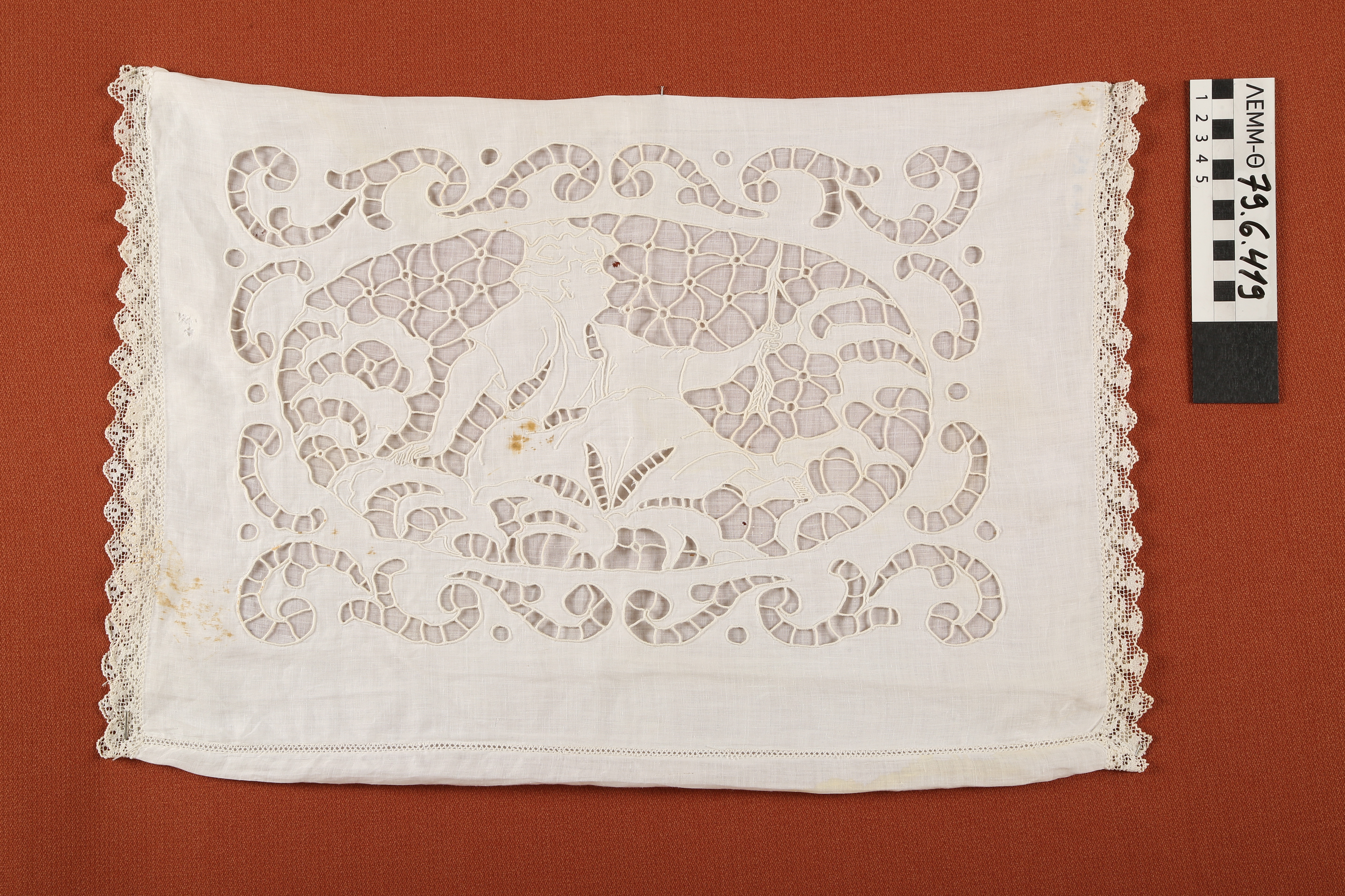 Μαξιλαροθήκη - λευκή μαξιλαροθήκη με κοφτό κέντημα και δαντέλα στις στενές πλευρές
